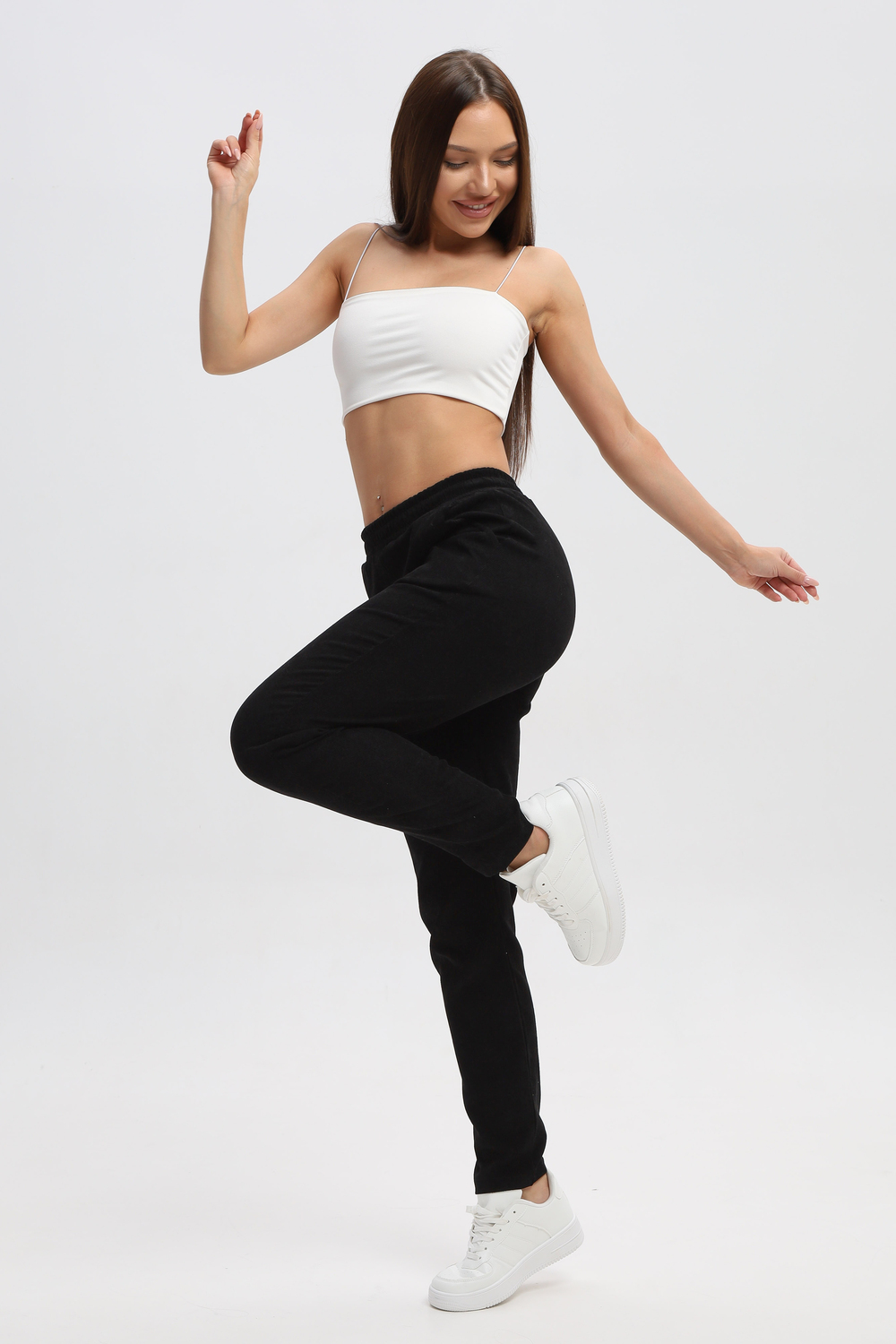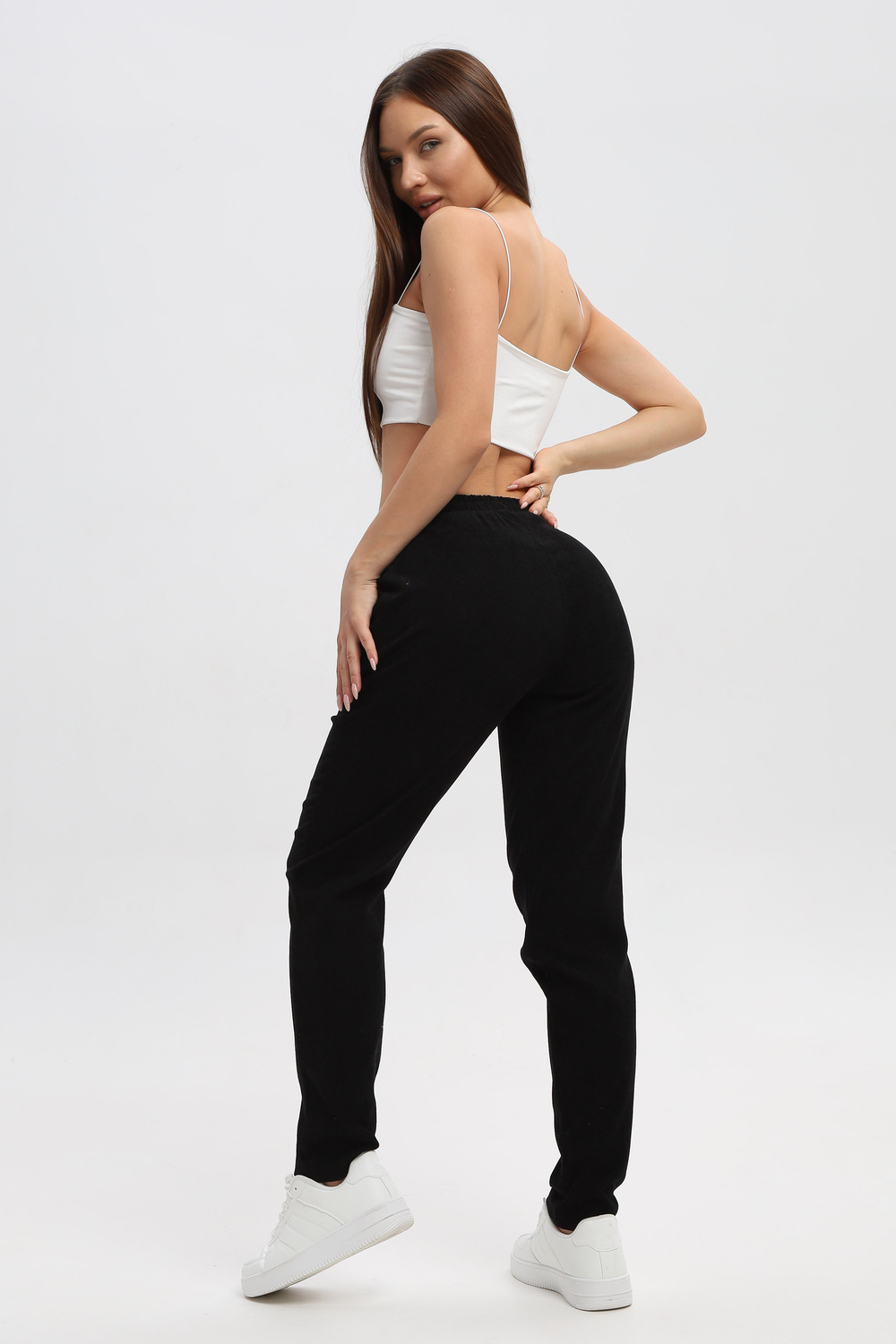 Вельветовые женские штаны с резинкой на талии сочетание комфорта и стиля. Темные оттенки делают их актуальными осенью и зимой, а универсальный зауженный фасон впишется в повседневные, деловые и молодежные образы. Высокая талия и эластичный пояс обеспечивают комфортную посадку, что делает эти брюки идеальными для повседневной носки. Практичные боковые карманы подчеркивают удобство модели и позволяют хранить мелочи всегда под рукой. Цвет: черный; Материал: вельвет;вельвет; Состав: 95% нейлон, 5% спандекс.