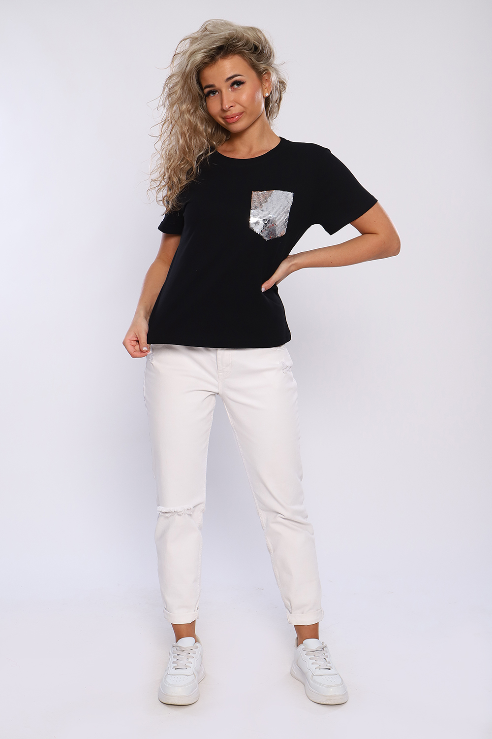 Футболка классического фасона, прямого кроя, с коротким рукавом и округлым вырезом. Декорирована принтом. Универсальная модель футболки отлично подойдет для любого образа и станет необходимой вещью в вашем гардеробе. Ткань кулирка пенье, плотность 160 г. Цвет: черный;белый; Материал: кулирка;кулирка; Состав: 100% хлопок.