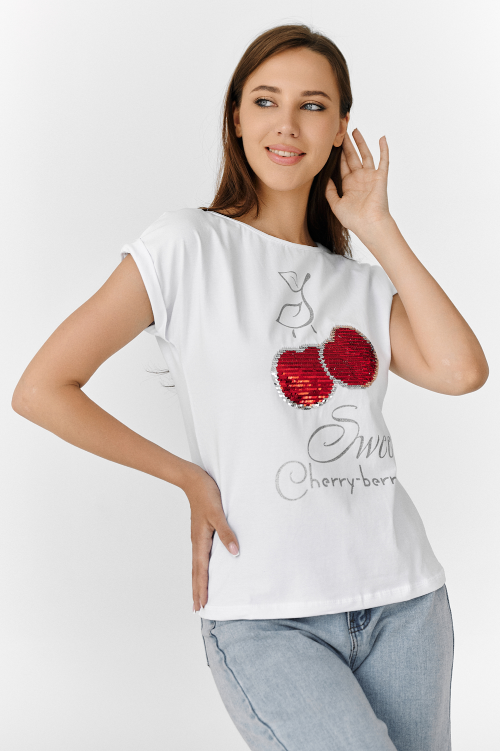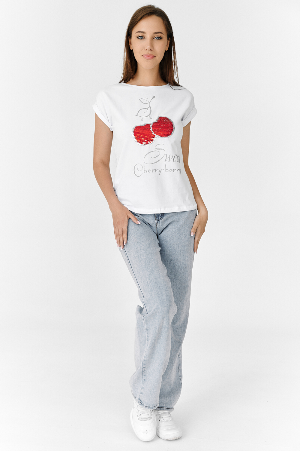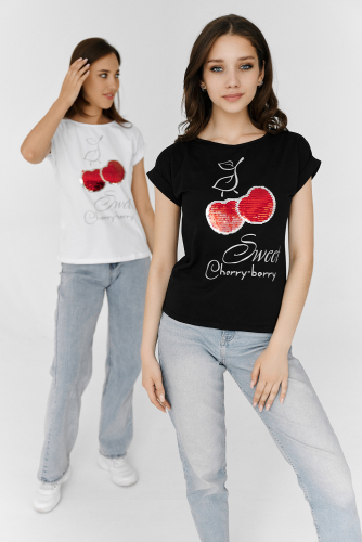 Футболка полуприлегающего силуэта, средней длины, с округлой горловиной. Рукав цельнокроеный, короткий, на манжете с отворотом. Цвет: черный; Материал: кулирка с лайкрой пенье;кулирка с лайкрой пенье; Состав: хлопок 95%, лайкра 5%.