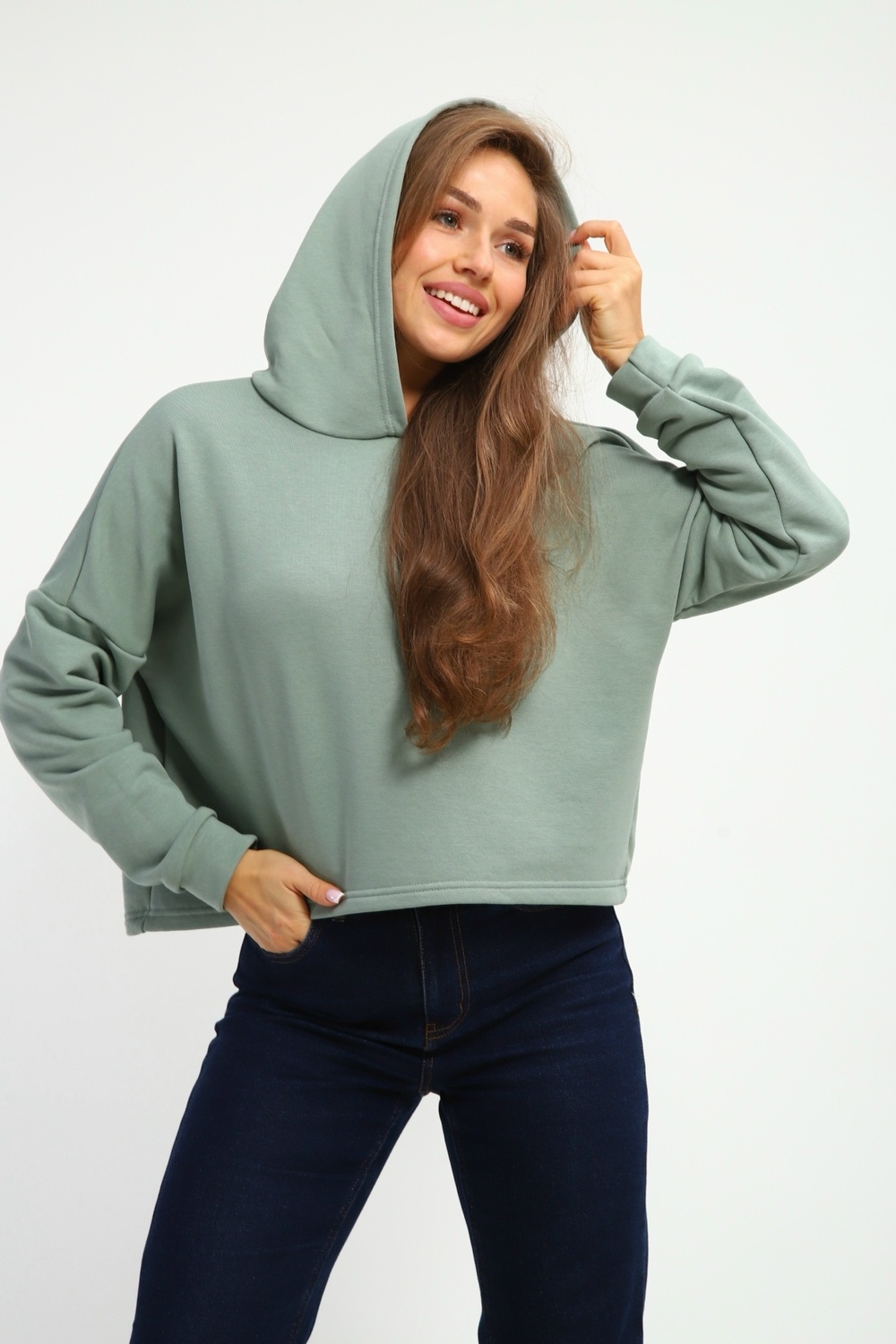Худи укороченное - это модный и стильный женский свитшот, который позволяет с легкостью создавать яркие образы. Оно станет отличным дополнением к вашему гардеробу. Особенностью этого худи является его оверсайз фасон без начеса , который позволяет скрыть недостатки фигуры и подчеркнуть ее достоинства. Благодаря своей свободной посадке, он удобен в носке, не сковывает движения и придает легкость образу. Однотонная трикотажная толстовка свободного кроя выполнена из мягкого, но плотного футера 3х нитки, который прекрасно держит форму, остается комфортным осенью и весной, подходит для демисезонных тренировок, фитнеса, танцев, бега и домашней носки. Цвет: оливковый; Материал: футер 3-х нитка; Состав: 70% хлопок, 30% полиэстер.