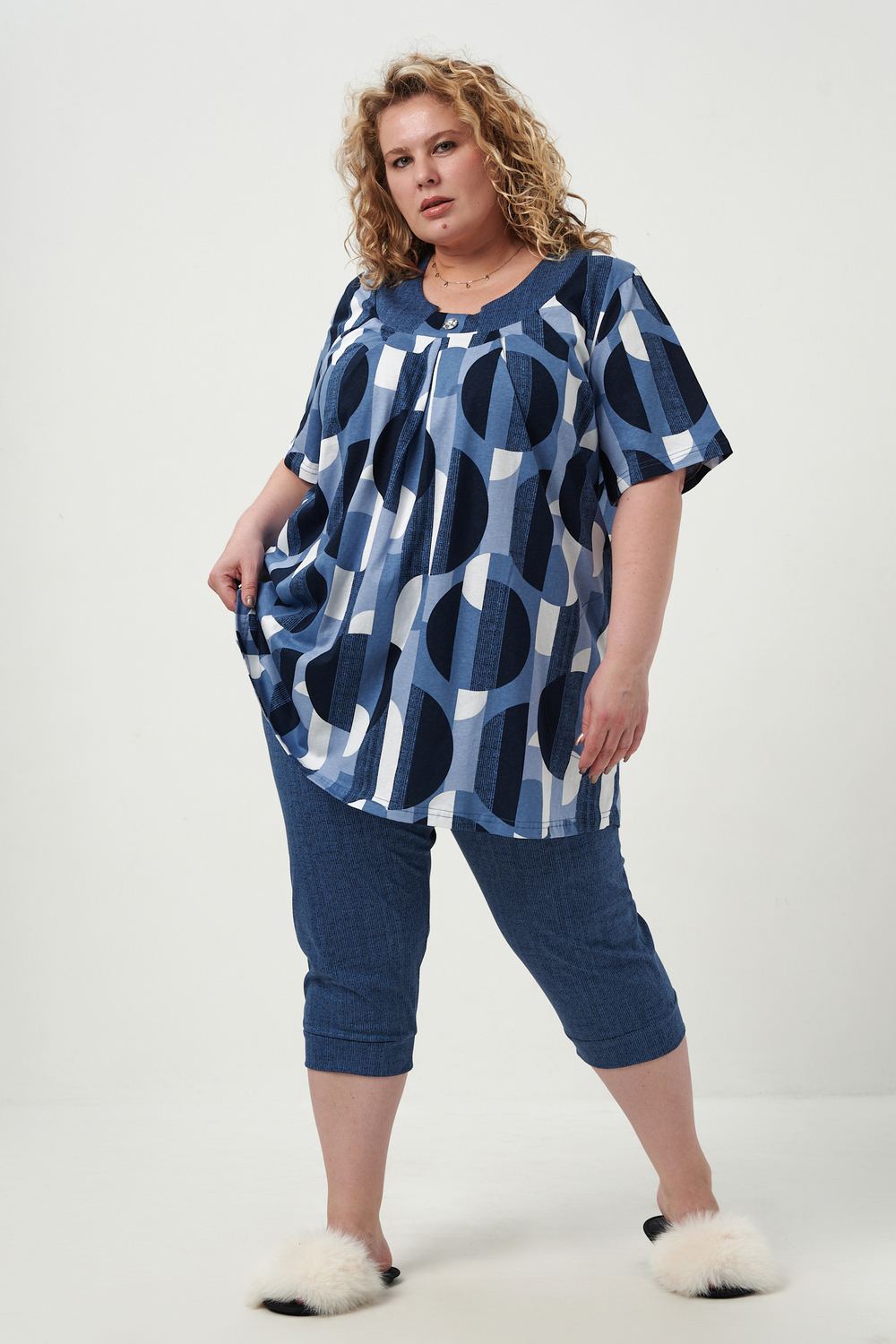 Костюм бриджи с футболкой женские. Цвет: синий; Материал: кулирка пенье;кулирка пенье; Состав: 100% хлопок.