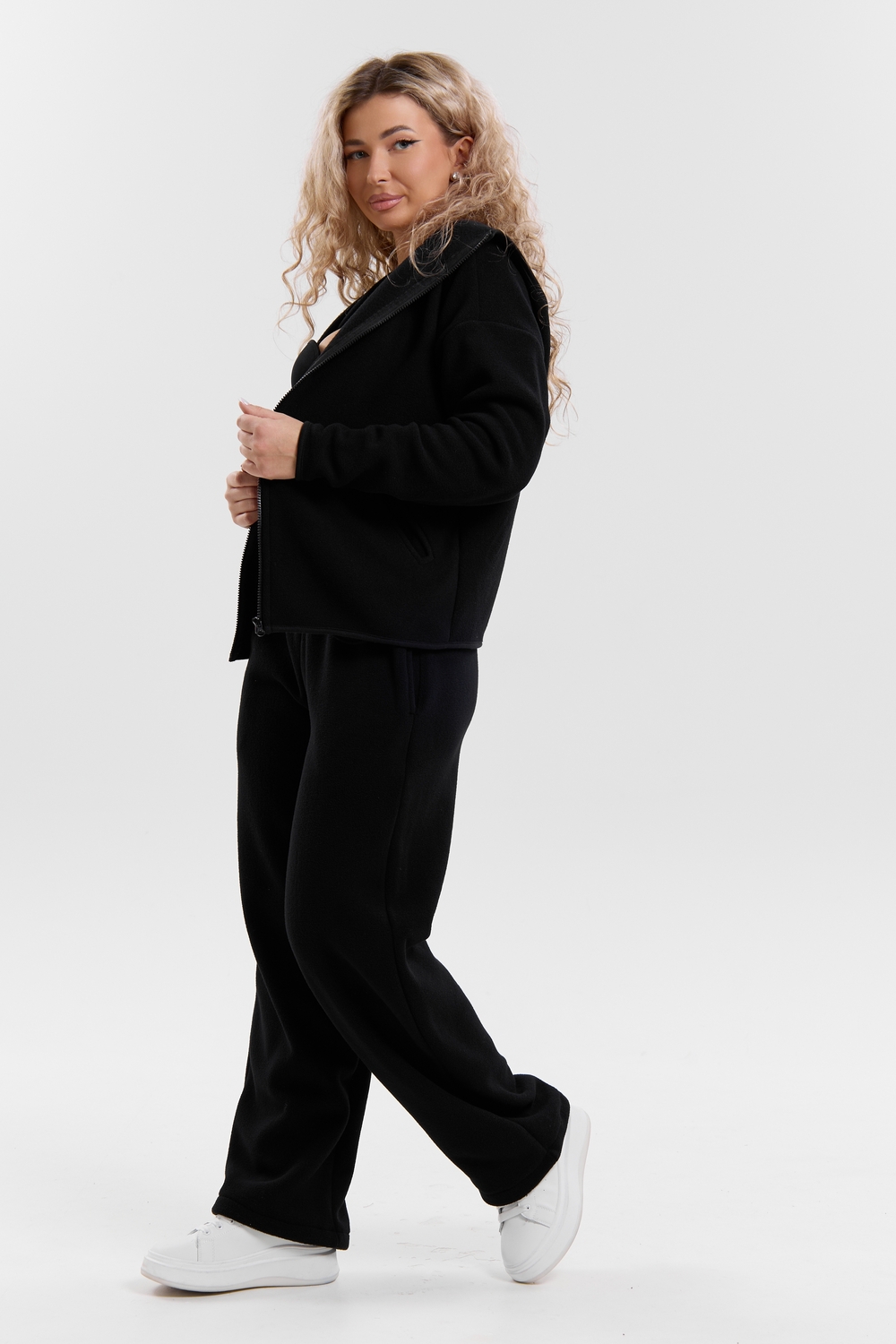 Флисовый костюм на молнии станет незаменимой вещью в вашем гардеробе. Костюм выполнен из плотной, мягкой ткани , что делает его очень теплым и приятным к телу. Благодаря высокому вороту, а также комфортному капюшону, надежно защитит ваше горло от прохлады в любое время года будь то осень, весна, зима или прохладное лето. Качественная молния добавляет стильный акцент, а удобный замок обеспечивает легкое надевание и снятие. Резинка на поясе обеспечивает идеальную посадку и комфорт, брюки мягко облегают талию, не сдавливая и не сползая. Шнур на поясе добавляет не только стильный акцент, но и даёт возможность индивидуально регулировать посадку. Резинки на манжетах фиксируют брючины, затягивая с помощью фиксатора, создавая аккуратный новый образ. Такой крой визуально вытягивает ноги и придаёт образу собранность. Свободный фасон багги гарантирует свободу движений и комфорт в течение всего дня. Прорезные боковые карманы - незаменимый элемент для удобства. Они не выпирают, не утяжеляют силуэт и в то же время добавляют практичности. В них можно удобно разместить разные мелочи- это маленькая деталь, которая делает модель ещё более функциональной. Флисовый костюм помогает создавать стильные образы. Его универсальный крой позволяет использовать его как повседневную одежду для прогулок, так и для дома. Модный фасон подойдет для женщин любого телосложения. Костюм представлен без яркого принта и рисунка, что делает его универсальной базой. Забудьте о зимних холодах костюм подарит уют. Наш костюм с удобными большими прорезными карманами станет вашим спутником в создании спортивных или расслабленных аутфитов. Костюм на молнии с высоким воротником и капюшоном подойдут для создания модных образов в стиле кэжуал, спорт и спортшик. Используйте его как костюм для активного отдыха или как базовый лук на каждый день. Настоящий тренд сезона, который идеально впишется в ваш образ в любое время. Почувствуйте себя уютно в нашем плюшевом и стильном костюме. Цвет: черный;шоколад;графит; Материал: флис;флис; Состав: 100% п/э.