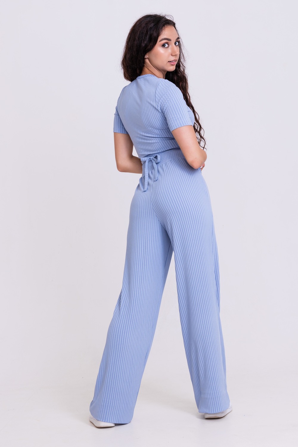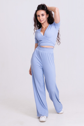 Костюм лапша палаццо + топ на завязках короткий рукав 1254