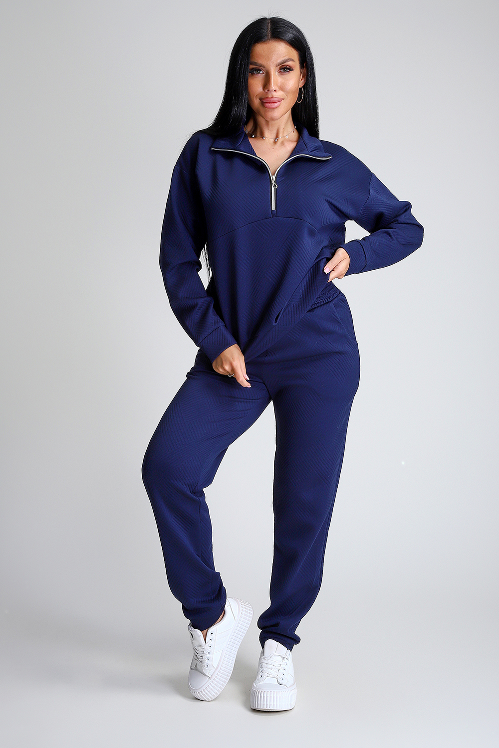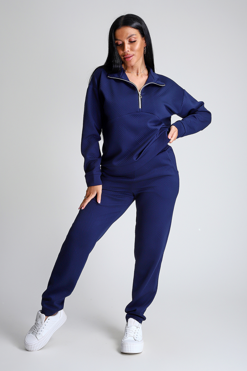 Спортивный женский костюм двойка - это элегантное и практичное решение для тех, кто ценит удобство, свободу движений и современный модный стиль. Костюм для активных девушек, взрослых женщин и подростков состоит из толстовки и брюк джоггеров. Выполнен костюм из приятного к телу эластичного трикотажа с геметрически рельефной структурой. Модная толстовка свободного кроя, воротник-стойка застегивается на молнию, спущенный рукав обеспечивает свободу движения. Брюки прямого кроя с боковыми карманами, удобный пояс на резинке выполнен на спецмашине, по низу брюк притачные манжеты. Повседневный трендовый костюм подходит для любой фигуры, подчеркивая ваши достоинства, будет идеален на отдыхе, прогулке и на спортивных тренировках. Цвет: темно-синий;шоколад; Материал: тесла;тесла; Состав: 95% пэ, 5% эластан.