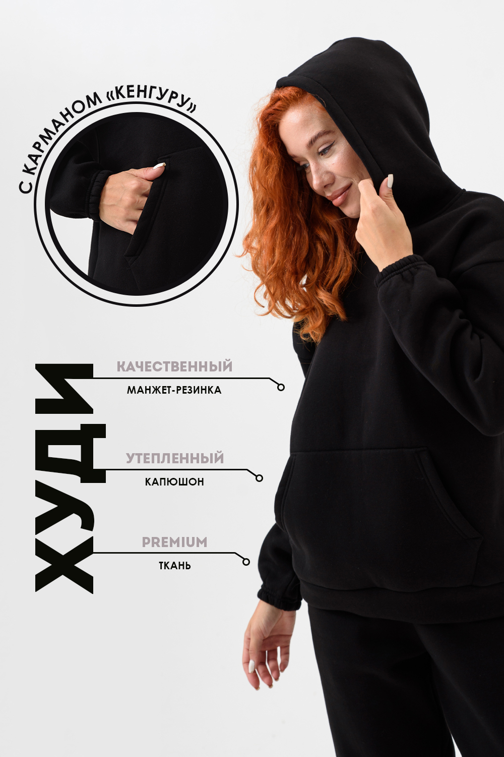 Теплый женский спортивный костюм от бренда Натали согреет вас в холодную погоду! Костюм оверсайз из футера с начесом станет вашим лучшим приобретением на сезон осень-зима. В его составе толстовка худи с карманом кенгуру и брюки на резинке с боковыми карманами. Костюм защитит от ветра и холода в любой ситуации. Утепленные штаны джоггеры имеют среднюю посадку. Костюм пошит из мягкой плотной ткани футер 3х-нитка с начесом премиум качества. При первых носках ворс может скатываться и оставаться на белье, это проходит после 1-2 стирки. Цвет: черный; Материал: футер 3-х нитка с начесом;футер 3-х нитка с начесом; Состав: Хлопок 80%, Полиэстер 20%.