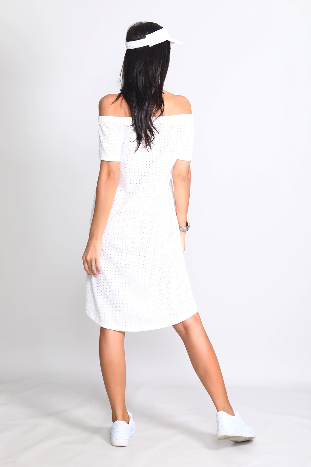 Платье женское с рукавами и открытыми плечами. Низ рукава со складками и манжетами. Верх собран на резинку 2,5 см. В этой лёгком воздушном платье можно гулять и отдыхать. Подходит для беременных. Цвет: молочный; Материал: жаккард;жаккард; Состав: 45% хлопок, 55% полиэстер.