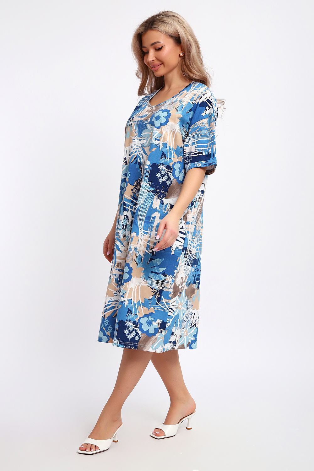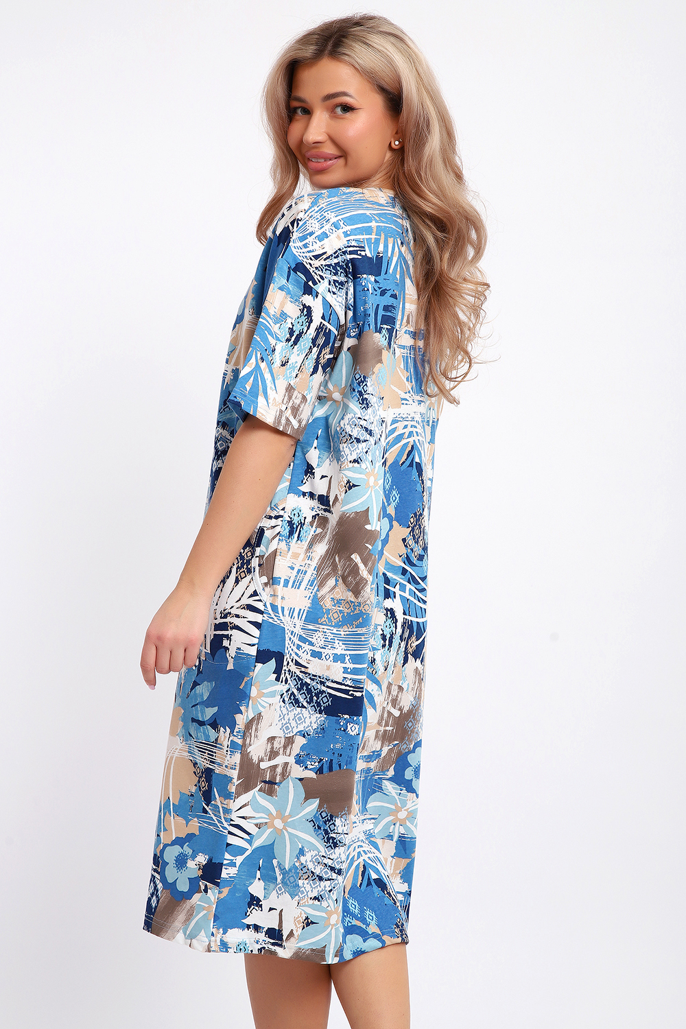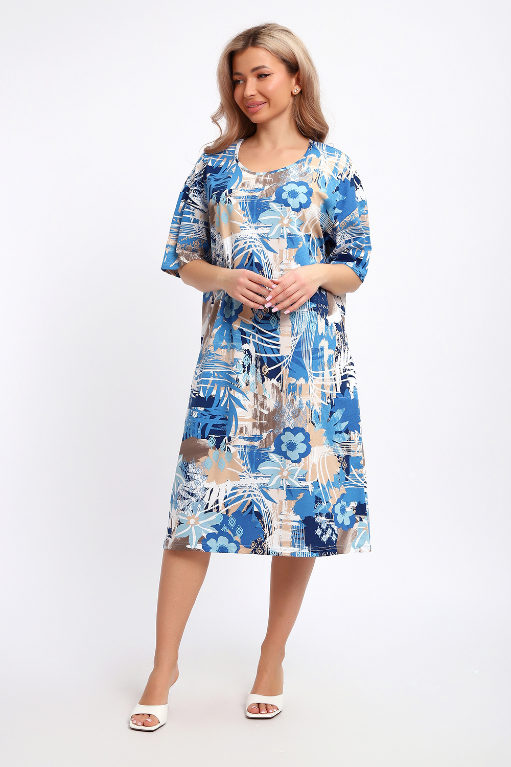 Изготовлено из мягкого хлопкового полотна кулирка, обеспечивает комфорт даже в жаркие дни. Яркий голубой оттенок с орнаментом добавляет свежести любому образу. Комфортная длина чуть закрывает линию колена. Стирать в бережном режиме, до 40С, не выкручивать, сушить в расправленном виде. Цвет: голубой; Материал: кулирка;кулирка; Состав: 100% хлопок.