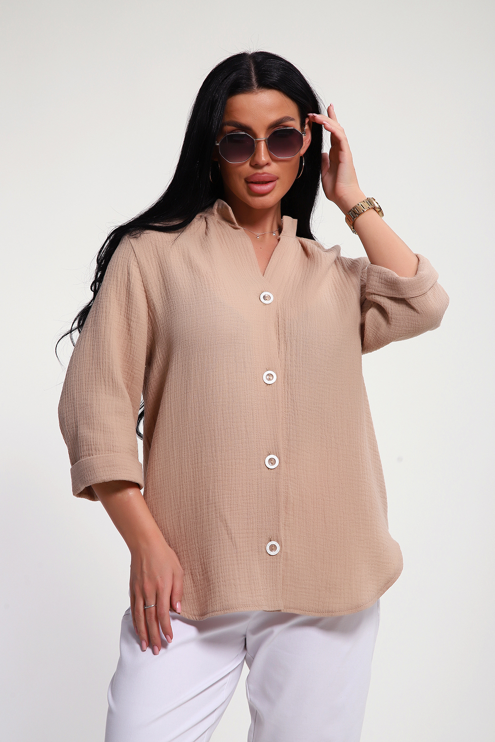 Женская муслиновая рубашка- это не просто предмет гардероба, это воплощение женственности, сочетающей в себе удобство, комфорт и безупречный вкус. Она станет вашим верным спутником при создании неповторимых образов, даря ощущение уверенности и свободы в любой ситуации. Муслин, известный своей невесомостью и воздушной структурой, позволяет коже дышать даже в самые жаркие дни. Цвет: капучино;бежевый;черный; Материал: муслин;муслин; Состав: 100% хлопок.