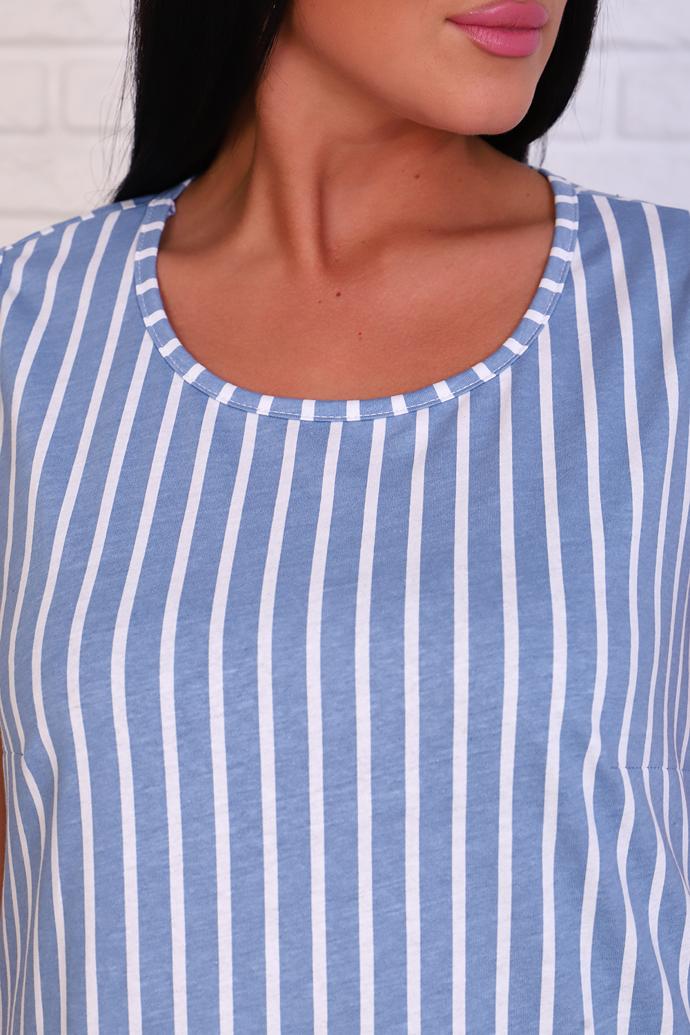 Сарафан женский расширенного силуэта с воланом по низу. Полочка изделия с нагрудными выточками. Горловина изделия округлой формы. Горловина и проймы обработаны окантовкой. Низ сарафана подогнут. Цвет: голубая полоса;малиновый; Материал: кулирка;кулирка; Состав: 100% хлопок.