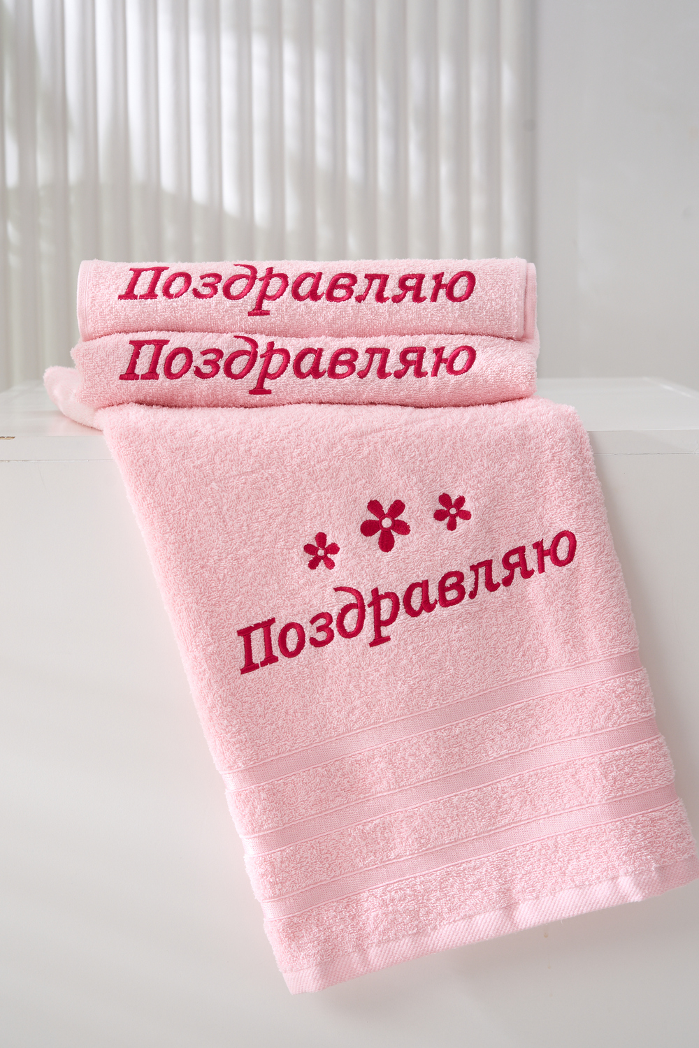 Подарочное махровое полотенце Поздравляю это идеальный способ порадовать близких и выразить самые тёплые пожелания! Нежный розовый цвет, стильная вышивка цветов и яркая поздравительная надпись делают это полотенце не только практичным, но и оригинальным подарком для любого праздника. Мягкая хлопковая ткань отлично впитывает влагу, дарит комфорт и уют после водных процедур. Прекрасно подойдёт для подарка на день рождения, 8 Марта или любой другой приятный повод!