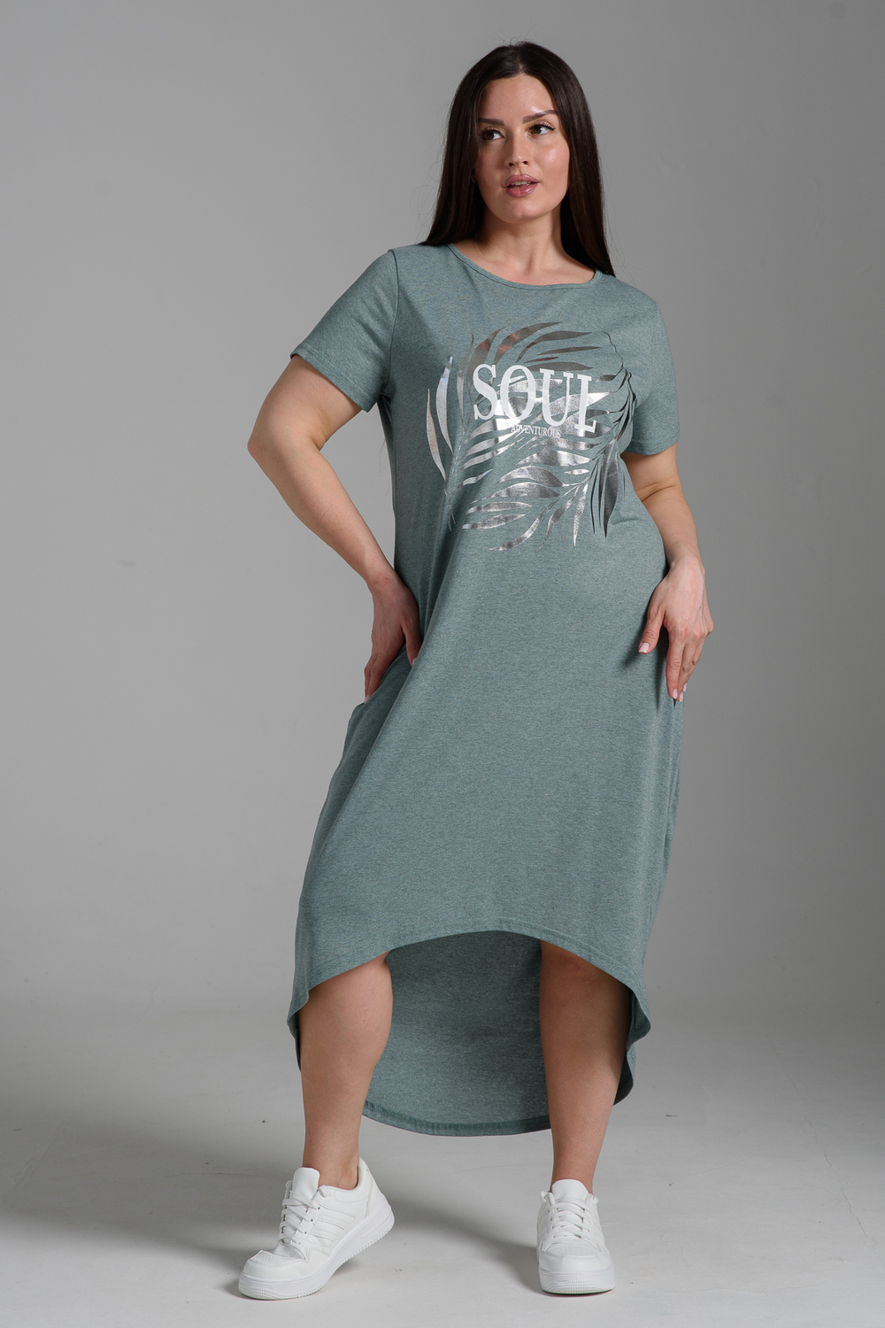 Женское универсальное платье-футболка для тех, кому захотелось свободных в талии и удобных полуприлегающих модных образов. Длинное платье-футболка с коротким рукавом - база на каждый день для стильной женщины. Тонкий и мягкий трикотажный материал подарит комфорт, а наличие в составе натурального хлопка с добавлением полиэстера обеспечивает износостойкость ткани. Широкая размерная сетка порадует обладательниц и стройных форм и форм plus size. Большие размеры - не препятствие для создания красивого силуэта!