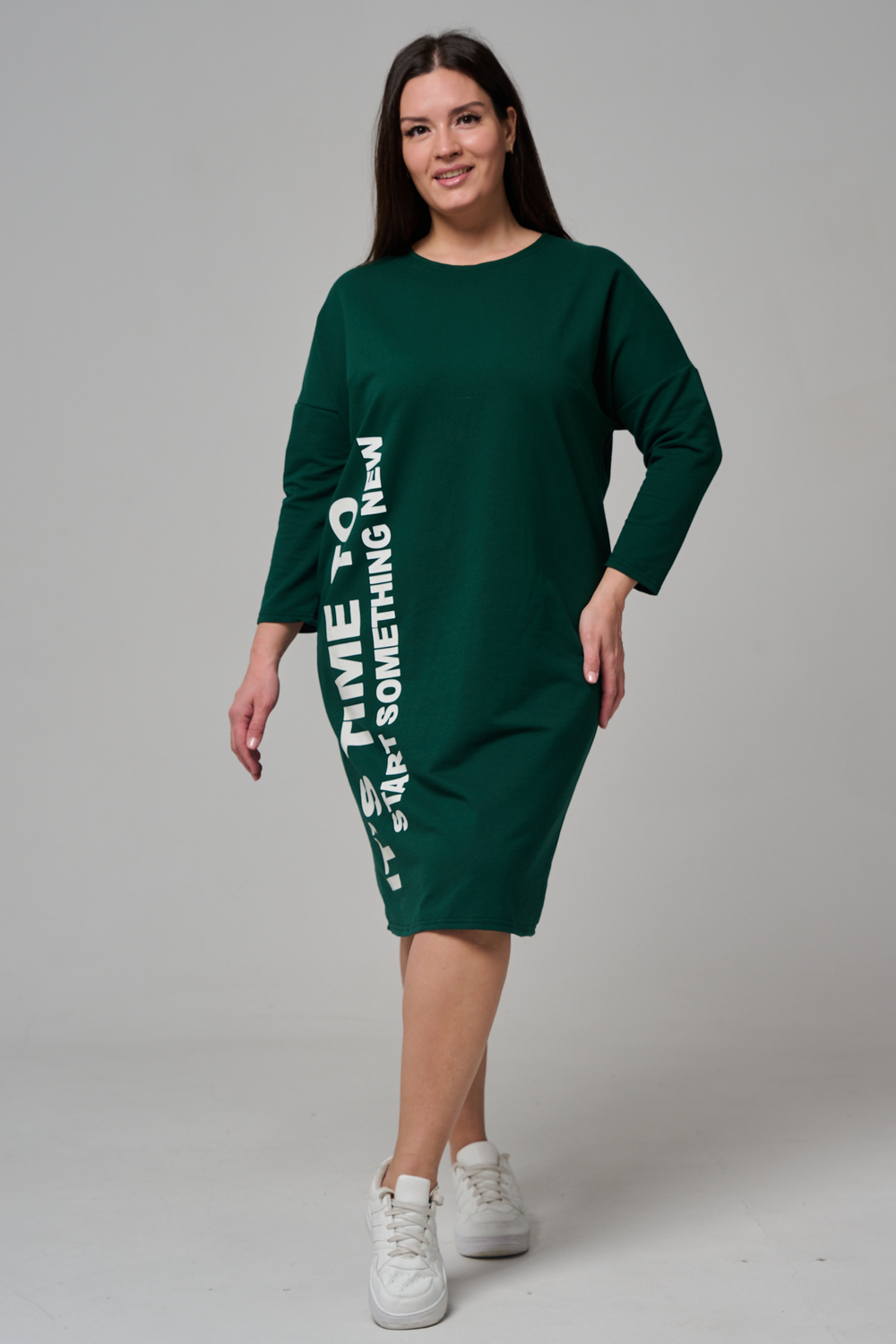 Платье из футера 2-х нитки, свободного кроя, спущенный рукав. На одной части платья стильный одноцветный принт.