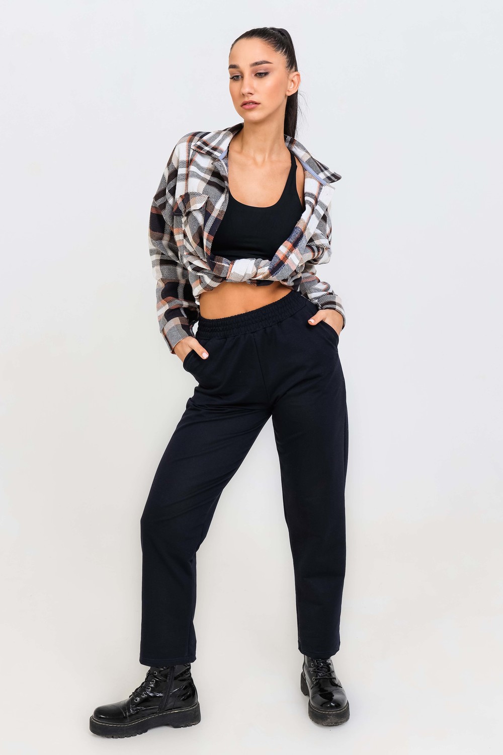 Женские брюки в классическом стиле с высокой посадкой. Благодаря наличию в составе небольшого количества полиэстера и лайкры, брюки не деформируются в процессе эксплуатации. Очень хорошо подчёркивают фигуру и добавляют стройности и женственности. Брюки подходят для любого мероприятия: в школу, в офис, на работу, торжество. Деформирование резинки в поясе исключено, так как она прошита на поясной машине. Ширина пояса 5 см. Карманы с отрезным бочком.