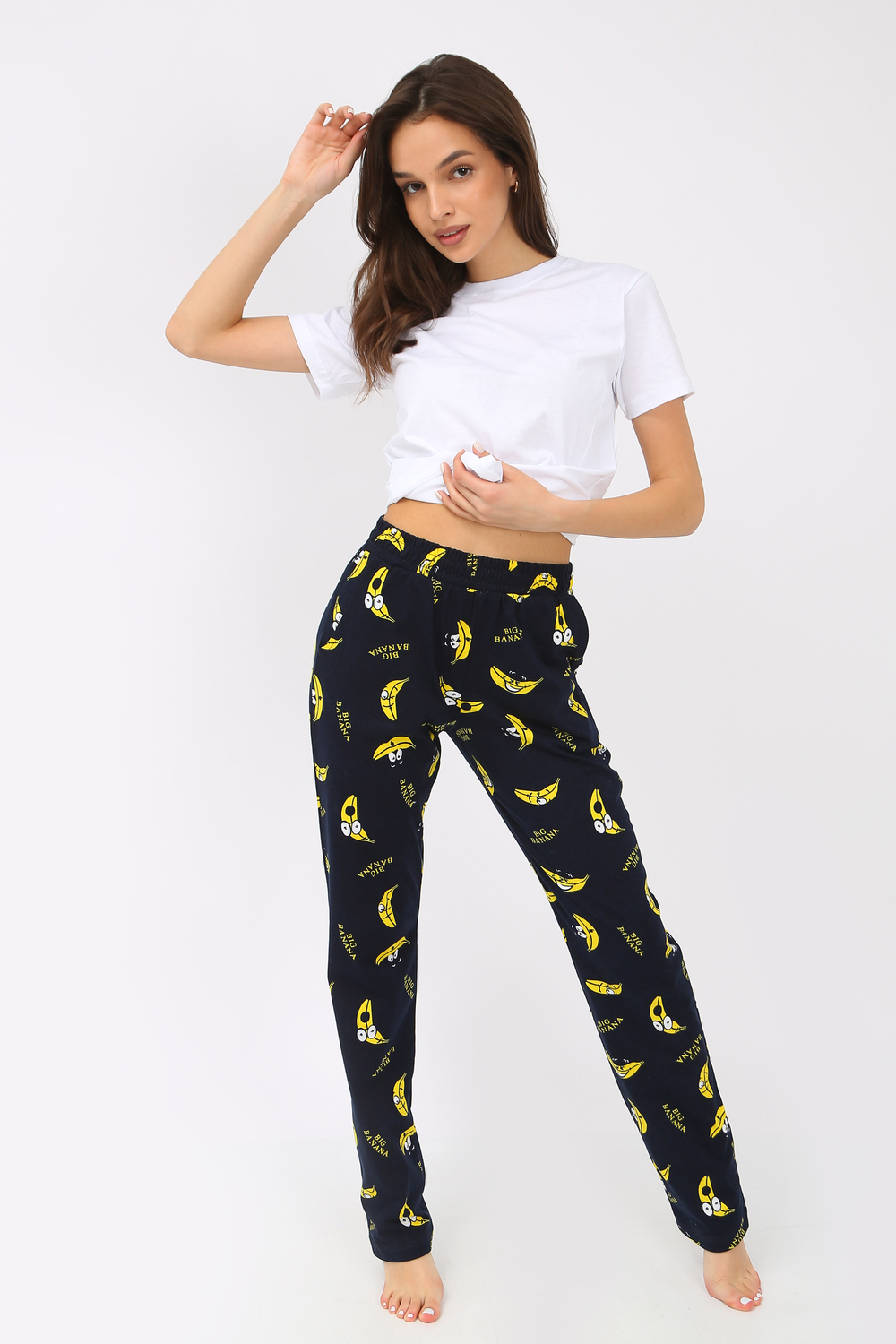 Женские пижамные брюки прямого кроя. Пояс на резинке. Карманы с отрезным бочком.