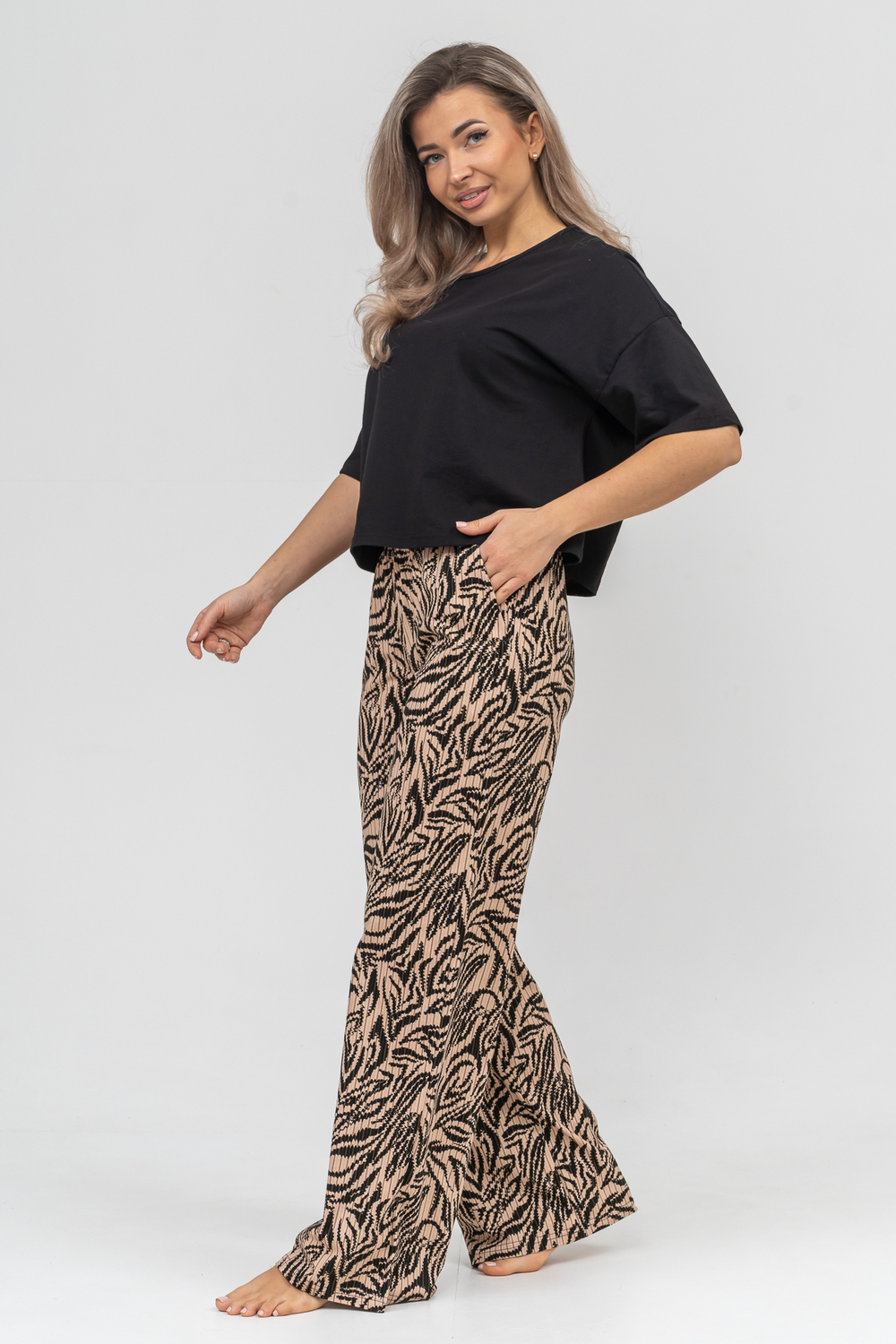 Женские стильные брюки - трубы выполнены из нового трендового 100% хлопчатобумажного полотна. Высокая посадка, вместительные боковые карманы, удобный и качественно обработанный на специальной машине пояс позволит Вам чувствовать себя комфортно. Широкие трубы смотрятся очень элегантно и женственно. Они стали трендом сезона, поскольку подчёркивают стройность и привлекательность ног, а прямой крой скрывает недостатки фигуры. При помощи такой модели можно сделать пропорции тела более сбалансированными. Женские брюки-трубы отличный предмет гардероба для любой представительницы прекрасного пола. В модели такого плана Вы будете чувствовать себя комфортно дома, на отдыхе, на даче и на море. Можете приобрести изделие в качестве подарка на любой праздник: день рождения, 8 марта, 14 февраля и просто так для души. Брюки можно купить с футболкой - костюм 36900.