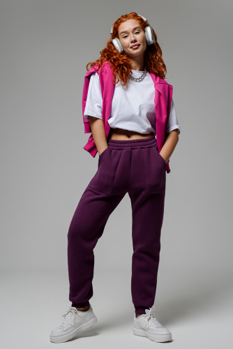 Брюки женские выполнены из ткани футер 3-х нитка петля качество пенье с эффектом soft brush (мягкая кисть). Это новое направление в обработке ткани, что придает изделию мягкость байки и легкость бархата. Брюки на поясе, с карманами, спереди защипы. Они очень удобного покроя, комфортные, легкие и теплые, подойдут для отдыха, прогулок и спорта. Для удобства подбора размеры смежные: 44-46; 48-50; 52-54; 56-58; 60-62. К брюкам можно подобрать в комплект толстовку 6757 - ткань и цвет идентичны