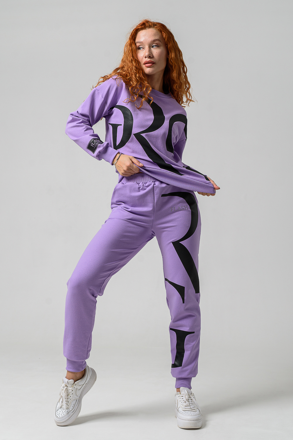 Женские брюки из футера 2-х нитки с лайкрой. По все длине брюк печать. По низу брюк резинка.