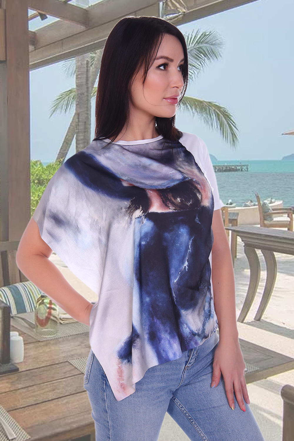 Размер 50 подошёл отлично на ОГ 108 и ОТ 98, длина самое то. Единственное тянет шов, где пришита отлетная полочка из шёлковой ткани, надеюсь после стирки это исчезнет