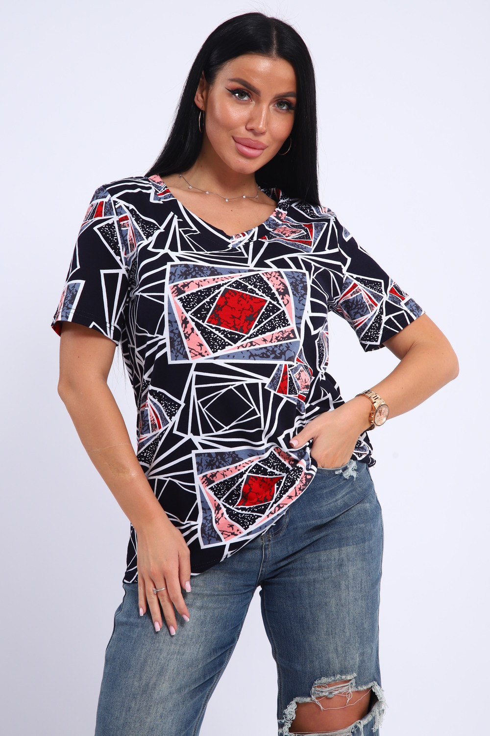 Футболка женская с V образным вырезом горловины и коротким рукавом.