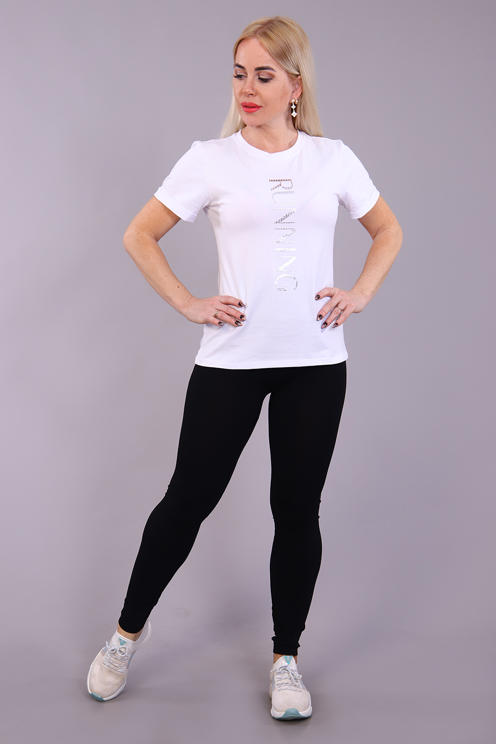 Классическая женская белая футболка. Оригинальная печать подчеркнет ее уникальность. Рукав подвернутый, горловина обработана обтачкой
