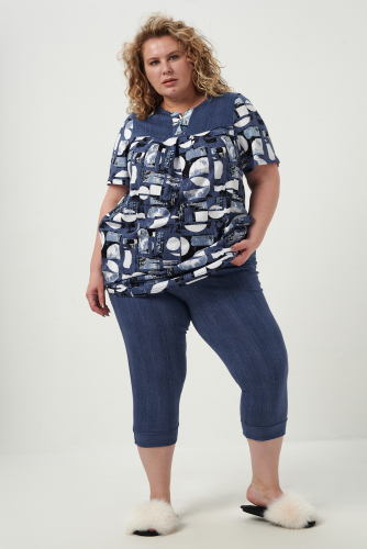 Футболка свободного кроя с коротким рукавом и модным принтом. Качественная аппликация с вышивкой. Бриджи облегающие.