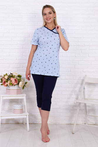 Костюм женский с принтом состоит из футболки и бридж. Модель представлена в трех трендовых оттенках этого сезона. Футболка выполнена из трикотажного полотна высокого качества, полуприлегающего силуэта, горловина в виде лодочки. Бриджи удобные, практичные, облегающего силуэта. Резинка вшита в пояс, длина чуть ниже колена. Ткань бридж мягкая на ощупь, не садится после стирки и не теряет цвет. Костюм непременно станет идеальным предметом вашего гардероба для фитнеса, туризма и любого активного отдыха.