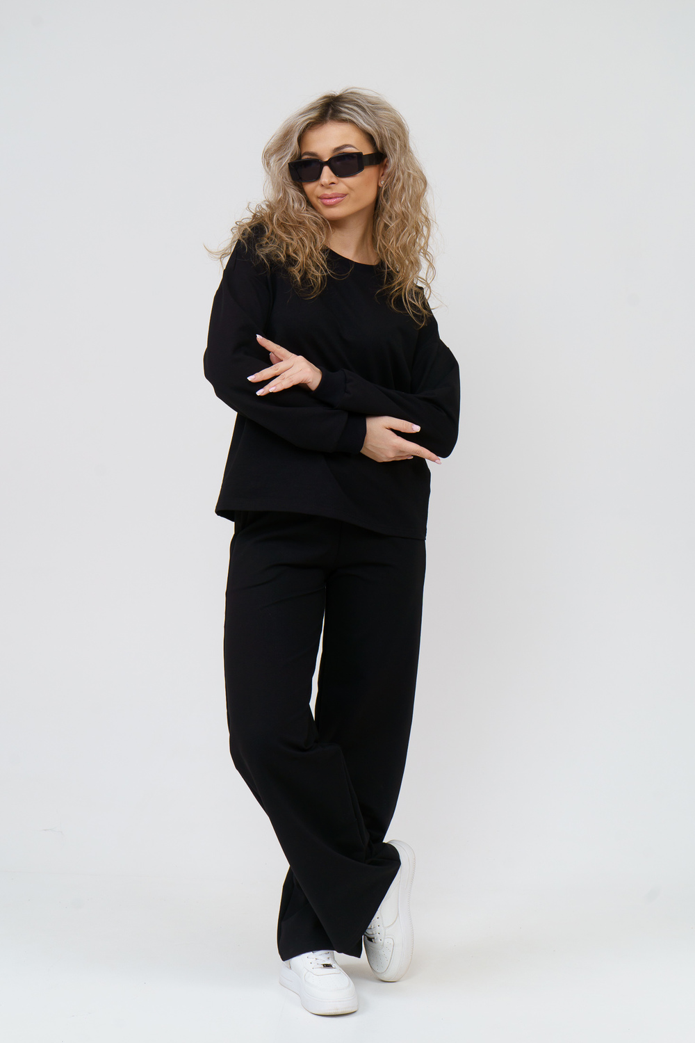 Модный спортивный костюм выполнен из плотного футера 2-х нитки высокого качества, который не линяет, не даёт усадку во время стирки, держит форму, не деформируется, а главное хорошо пропускает воздух. В состав комплекта входит свитшот с округлым вырезом горловины и стильные брюки - палаццо с высокой посадкой. Свитшот имеет свободный крой, спущенное плечо и манжеты на рукавах. Высокая посадка брюк идеально подойдёт на большие размеры и для беременных. А пояс брюк в свою очередь, выполненный на специализированной поясной машине, придаёт ещё больше удобства и комфорта. Костюм представлен в широкой размерной сетке с 42 по 56 размер, благодаря этому, Вы сможете выбрать трикотажный брючный костюм как большого размера, так и для девочки - подростка. Комплект такого плана идеально подойдёт для школы и офиса, в качестве повседневной одежды, домашнего костюма или для активного отдыха. Костюм свободного кроя не сковывает движений, отлично сидит по фигуре, скрывает все недостатки и выгодно подчёркивает достоинства. Комплект уместен в любой ситуации и будет находкой для тех, кто ценит свою индивидуальность. Купив данный костюм, Вы можете не только побаловать себя, но и преподнести в качестве подарка и порадовать других!