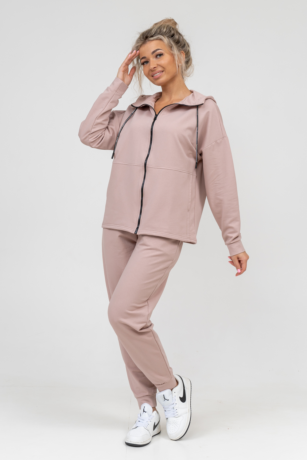 Женский костюм выполнен из футера 2-х нитки высокого качества с хлопком и небольшим добавлением полиэстера и лайкры, что позволяет изделию не скатываться и оставлять идеальный внешний вид на долгое время. Костюм состоит из толстовки и брюк. Толстовка прямая, на молнии, с двойным капюшоном - стойкой и двумя накладными вместительными карманами. Манжеты брюк и толстовки выполнены из основного материала, а пояс на специализированной поясной машине, что делает швы крепкими, ровными и качественными. Костюм такого плана представлен в широкой размерной сетке, что позволяет выбрать его как девушке, так и женщине. Однотонный костюм модных расцветок будет удачным выбором для поездок в отпуск, на пикник, для школы, для активного отдыха и прогулок по городу. Костюм с брюками - это настоящая находка для тех, кто ценит свою индивидуальность.