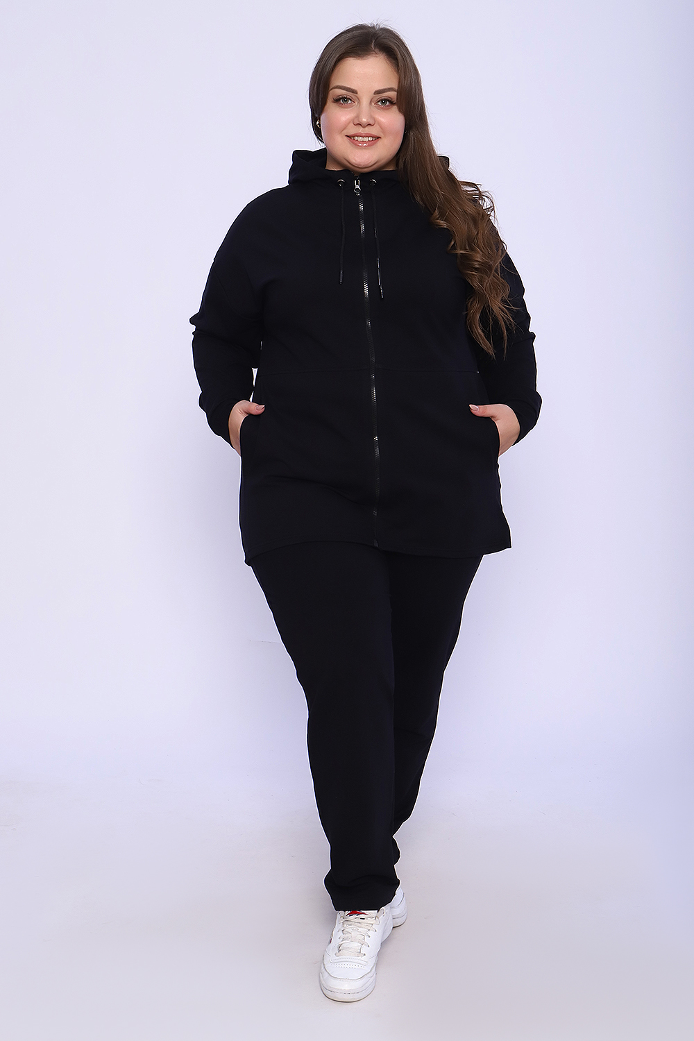 Женский костюм выполнен из футера 2-х нитки высокого качества с хлопком и небольшим добавлением полиэстера и лайкры, что позволяет изделию не скатываться и оставлять идеальный внешний вид на долгое время. Костюм состоит из толстовки и брюк. Толстовка прямая, на молнии, с двойным капюшоном - стойкой и двумя накладными вместительными карманами. Манжеты толстовки из основного материала. Брюки прямые, а пояс выполнен на специализированной поясной машине, что делает швы крепкими, ровными и качественными. Костюм такого плана представлен в широкой размерной сетке, что позволяет выбрать его как девушкам, так и женщинам корпулентных форм. Однотонный костюм модных расцветок будет удачным выбором для поездок в отпуск, на пикник, для активного отдыха и прогулок по городу. Костюм с брюками - это настоящая находка для тех, кто ценит свою индивидуальность, удобство и комфорт.