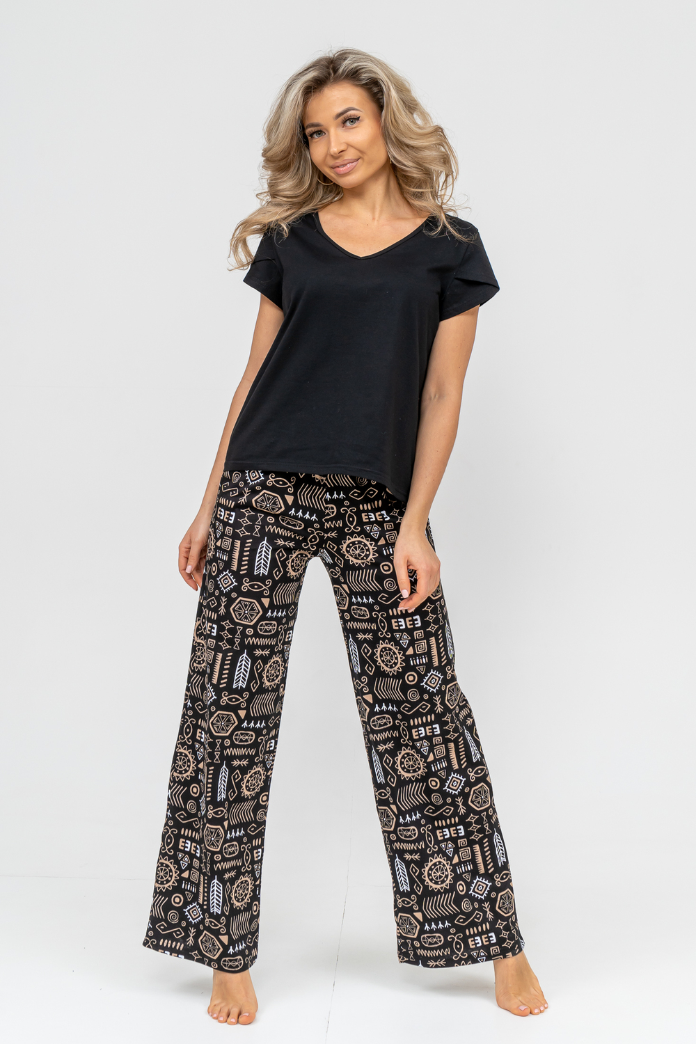 Женский стильный костюм состоит из футболки и брюк. Футболка выполнена из приятного к телу хлопчатобумажного полотна. V - образный вырез горловины и рукав с двойным крылышком идеально смотрится с брюками завышенной линии талии. Брюки - трубы в свою очередь выполнены из дышащего 100% хлопчатобумажного полотна. А вместительные боковые карманы, удобный и качественно обработанный на специальной машине пояс, позволит Вам чувствовать себя комфортно и уверенно. Костюм такого плана скроет все недостатки и подчеркнёт стройность, привлекательность и женственность фигуры. Брюки от костюма Вы можете приобрести отдельно - модель 36692, так же как и футболку - модель 36693.