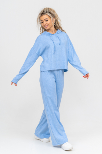 Стильный костюм выполнен из кашкорсе с начёсом. Ткань гладкая с лица и ворсистая с начёсом с изнанки, неприхотлива в уходе и приятная на ощупь. Благодаря особой мягкости, комфортности при носке, дышащей структуре полотна, эта разновидность французского трикотажа широко распространилась по миру. Материал гигроскопичен, поэтому хорошо держит тепло и позволяет телу дышать. Широкие брюки в стиле палаццо - это находка этого сезона. Пояс брюк выполнен на специализированной поясной машине, что делает его максимально качественным. Толстовка свободная, с капюшоном, спущенной линией плеча и слегка удлинённым рукавом. Всё это делает мягкий приятный к телу костюм по настоящему любимым! Костюм можно надевать дома, в качестве повседневной одежды, на работу, в поездку или деловую встречу. Свободный прямой крой свитшота и брюк хорошо скрывает несовершенства, подчеркивает достоинства фигуры и изящный силуэт. Толстовку и брюки можно носить как вместе, так и отдельно. Однотонный дизайн без принта, надписей и декоративных элементов будет гармонировать с любым стилем одежды. Свитшот с длинным рукавом, спущенным плечом можно легко сочетать с джинсами и юбками. Длина рукава указана от точки основания шеи. К брюкам свободной формы можно подобрать абсолютно любой верх. Дополнить образ можно любимыми аксессуарами и украшениями. Стильный, модный брючный костюм, спортивный женский теплый, могут носить девочки - подростки, взрослые и беременные женщины. Так же костюм можно взять для отдыха и йоги, взять с собой в отпуск или в путешествие. Комплект из свитшота и свободных брюк станет удобной прогулочной одеждой на любой сезон. Желаем Вам прекрасного настроения и приятных покупок!