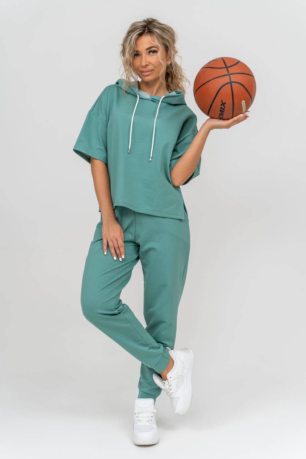 Женский костюм выполнен из футера высокого качества с хлопком и небольшим добавлением полиэстера и лайкры, что позволяет изделию не скатываться и оставлять идеальный внешний вид на долгое время. Костюм состоит из толстовки и брюк. Толстовка с капюшоном и шнурком. Линия плеча спущена, рукав укороченный, по бокам имеются небольшие разрезы. Брюки представлены с вместительными боковыми карманами. Манжеты брюк выполнены из основного материала, а пояс на специализированной поясной машине, что делает швы ровными и качественными. Свободный крой прекрасно будет смотреться на дамах с любыми формами. Костюм такого плана представлен в широкой размерной сетке, что позволяет выбрать его как девушке, так и женщине. Однотонный костюм модных расцветок будет удачным выбором для поездок в отпуск, на пикник, для школы, для активного отдыха и прогулок по городу. Будет гармонично сочетаться как с кроссовками, так и с туфлями, балетками или босоножками. Используя эту модель в качестве домашнего костюма, Вы поймёте, что это именно тот самый идеальный вариант, в котором будете себя чувствовать удобно, комфортно и современно. Костюм с брюками - это настоящая находка для тех, кто ценит свою индивидуальность!