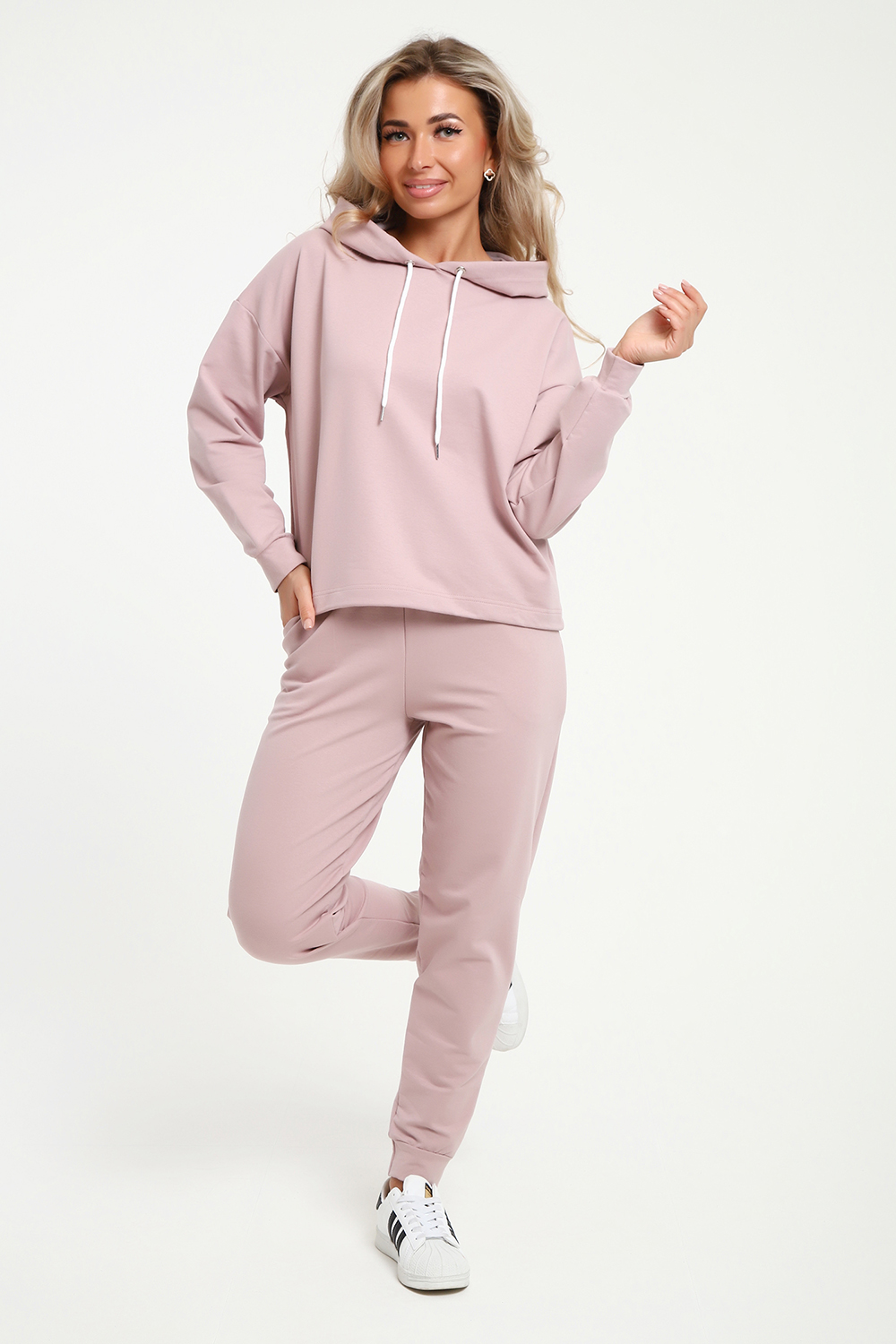 Женский костюм выполнен из футера высокого качества с хлопком и небольшим добавлением полиэстера и лайкры, что позволяет изделию не скатываться и оставлять идеальный внешний вид на долгое время. Костюм состоит из толстовки и брюк. Толстовка с капюшоном и шнурком. Линия плеча спущена, длинный рукав. По низу толстовки имеется резинка с фиксатором, с помощью которой Вы можете собрать изделие как вам хочется и нравится. Брюки представлены с вместительными боковыми карманами. Манжеты брюк выполнены из основного материала, а пояс на специализированной поясной машине, что делает швы ровными и качественными. Свободный крой прекрасно будет смотреться на дамах с любыми формами. Костюм такого плана представлен в широкой размерной сетке, что позволяет выбрать его как девушке, так и женщине. Однотонный костюм модных расцветок будет удачным выбором для поездок в отпуск, на пикник, для школы, для активного отдыха и прогулок по городу. Будет гармонично сочетаться как с кроссовками, так и с ботинками. Используя эту модель в качестве домашнего костюма, Вы поймёте, что это именно тот самый идеальный вариант, в котором будете себя чувствовать удобно, комфортно и современно. Костюм с брюками - это настоящая находка для тех, кто ценит свою индивидуальность!