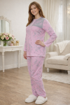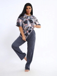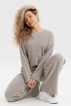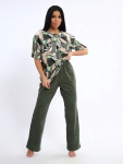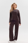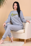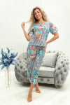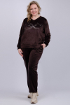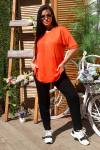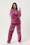 Комплект трикотажный футболка и брюки из натурального хлопка высокого качества. Размерный ряд с 48 до 66 размера. Футболка нежно-песочного цвета, брюки бордово-винного цвета с растительным рисунком, есть боковые карманы.