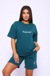 Идеальный костюм для лета! Костюм свободного кроя отлично подходит для прогулок, путешествий и отдыха. В комплекте модные шорты и оверсайз футболка, плечо со спущенной проймой. Костюм выполнен из футера 2х нитки. В нем будет не жарко, благодаря хлопку в составе. Шорты имеют функциональные карманы.