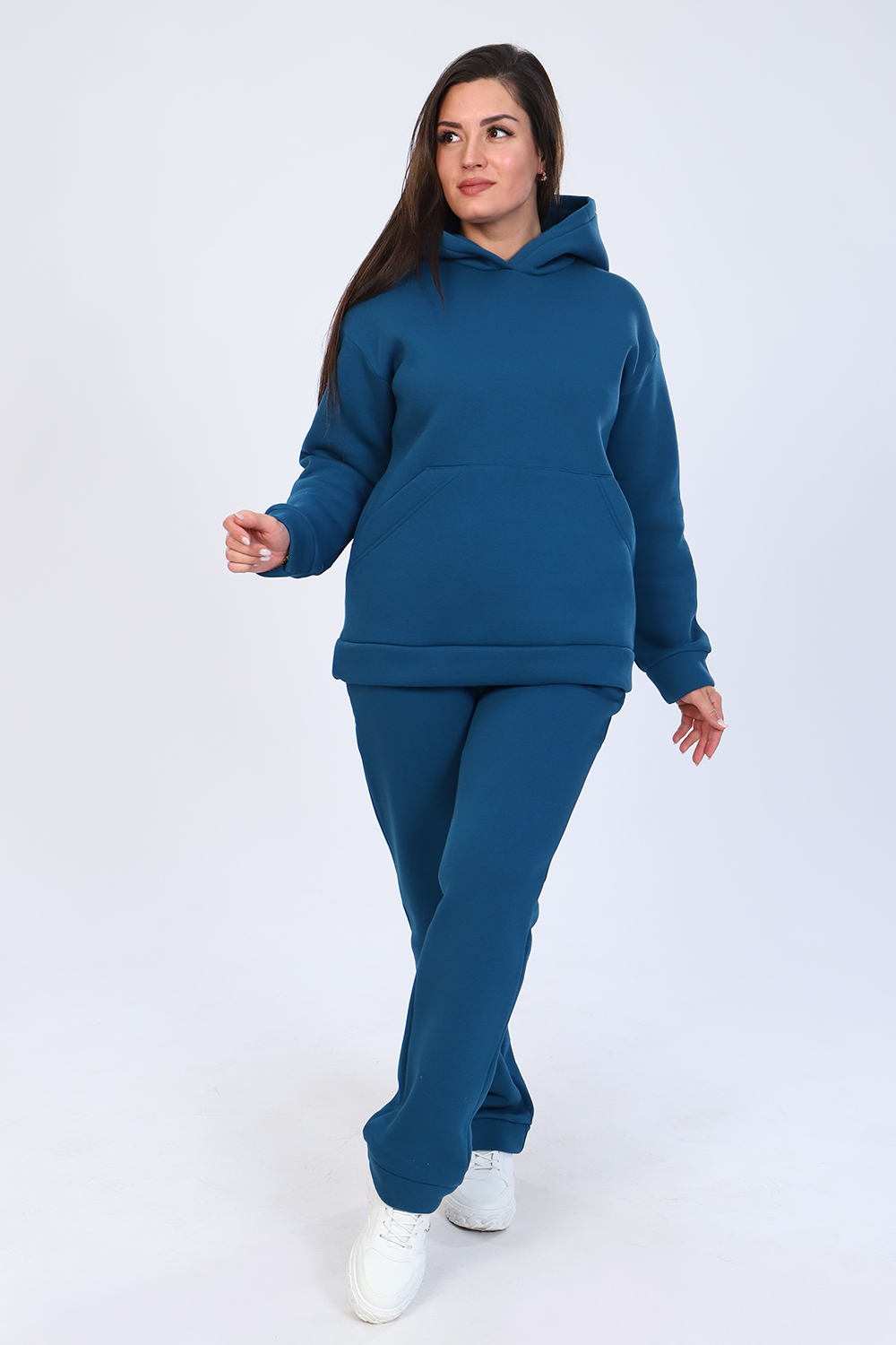 Теплый женский костюм толстовка + брюки. Толстовка с капюшоном, на животе карманы, рукава и низ отделаны манжетами. Брюки с карманами, внизу манжеты. Несколько вариантов расцветки. Размеры от 44 до 54.