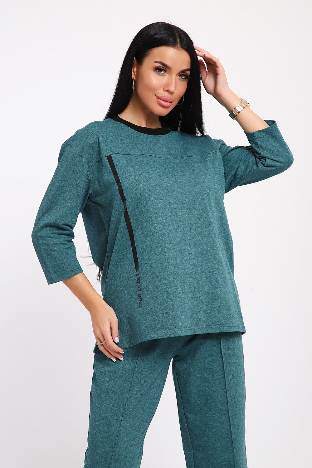 Костюм с рукавами три четверти и широкими брюками олицетворяет все грани моды: легкий, свободный и красивый. Трикотажный комплект создан для отдыха, прогулок и спортивных занятий. Футер двухнитка обеспечивает мягкость и легкость при носке. Рукава 3/4 добавляют изюминку с акцентом на женственность и комфорт. Костюм будет явным лидером вашего гардероба. Отличный выбор, чтобы выглядеть модно и подчеркнуть свой индивидуальный стиль!