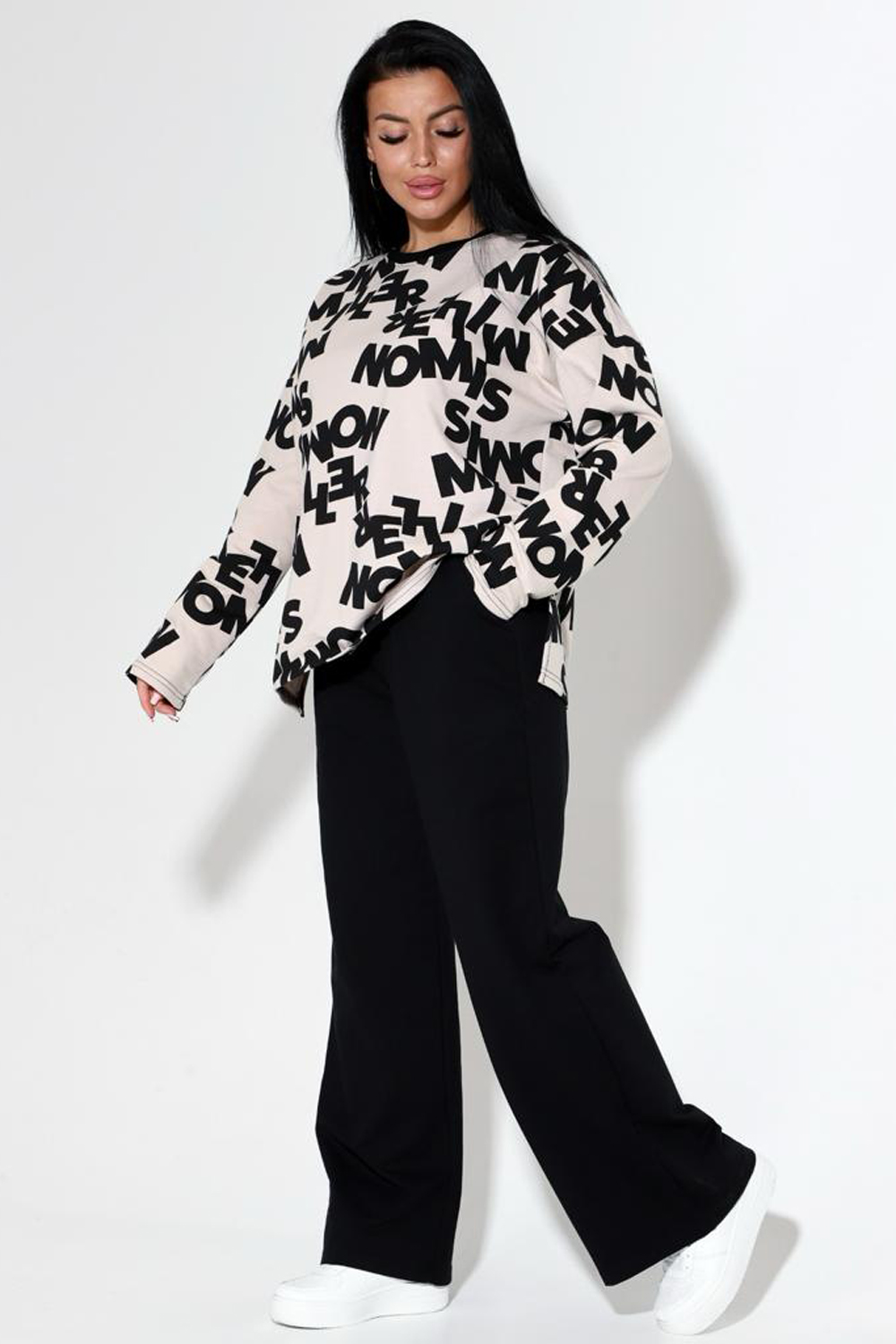Женский костюм из футера 2х нитки с лайкрой кофта + брюки, кофта свободная с длинными рукавами и разрезом по бокам. Брюки палаццо с высокой посадкой с карманами . Костюм прекрасно подойдёт для дома .