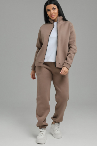 Домашний женский костюм из мягкого, теплого флиса. Кофта полуприлегающего силуэта, застегивается на петли и пуговицы. Длиной до бедер с фигурной линией низа. Рукав втачной, длиной 3/4 с манжетом из отделочной ткани. Воротник пиджачного типа с закругленными углами, из отделочной ткани. Борта, воротник и лацканы отстрочены. Домашние брюки прямого кроя с вместительными карманами в боковом шве, комфортный пояс на резинке, располагается на линии талии, длина брюк ниже щиколотки.