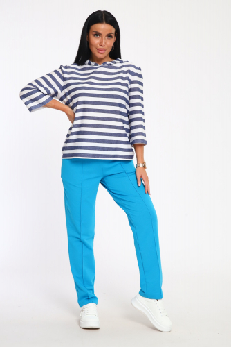 Представляем Вашему вниманию современный костюм, состоящий из брюк и футболки с капюшоном. Футболка в полоску это модный тренд уже несколько сезонов подряд Футболки с капюшоном-универсальная вещь, которая обязательно должна присутствовать в гардеробе любой девушки и женщины. В сочетании с такой футболкой можно наработать огромное количество образов, как на каждый день ,так и для различных мероприятий. Обожающие эксперименты девушки и женщины могут сочетать футболку с классическими брюками, чтобы соответствовать экстравагантному стилю спортшик. Наша модель брюк с отстроченной стрелкой спереди, двумя боковыми карманами, поясом на резинке отлично подходит для этого. Добавить к стильному луку можно туфли на высоком каблуке или стильные ботинки на толстой подошве .Женщина будет выглядеть независимо и очень модно. Наряд можно дополнить яркими аксессуарами и образ уже подойдет для выхода в люди. Футболка выполнена из 100%хлопка.В ней будет комфортно в любую погоду .Брюки выполнены из трикотажного полотна .которое сохранит свой первоначальный вид на долгое время В этом костюме вы будете выглядеть эффектно и приковывать к себе взгляды. Костюм имеет большую размерную сетку с 48 по 60размер.