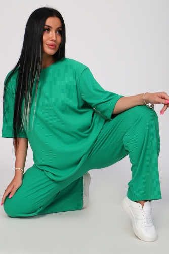 Костюм женский с широкими брюками. Кофта оверсайз удлинённая, рукав до локтя, горловина обработана обтачкой. Брюки длинные, широкие с карманами. Большой размерный ряд. На модели 48 размер.