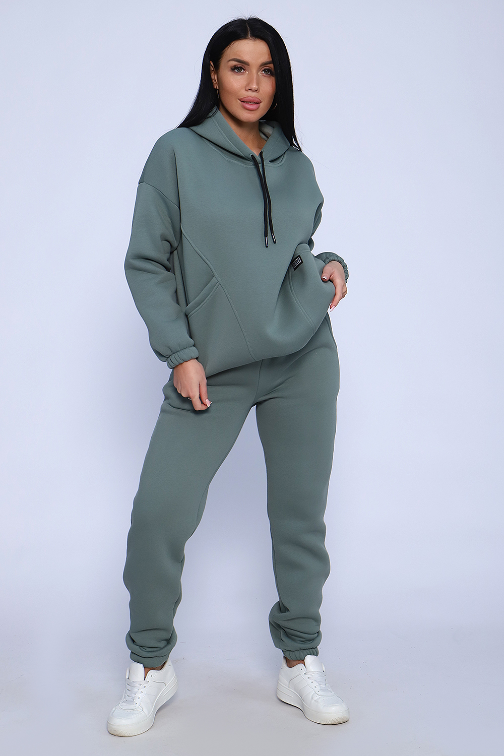 Теплый костюм выполнен из футера 3-х нитки с начесом с содержанием хлопка премиум качества. Костюм состоит из объёмной толстовки в стиле оверсайз с накладными карманами и джогеров. Низ брюк и рукавов на толстовке обработан резинкой. Пояс брюк на резинке, для удобства по бокам расположены прорезные карманы. Перед использованием желательно постирать костюм при 30 градусах, тогда излишний ворс примнется.
