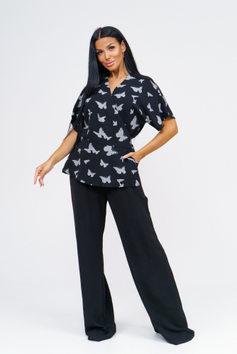 Костюм женский двойка состоит из туники свободного кроя и брюк на резинке. Туника имеет стойку на горловине и рукава длиной до запястья, обеспечивая теплую защиту для вашего верхнего тела. А брюки в стиле палаццо добавляют дополнительный комфорт и свободу движений.