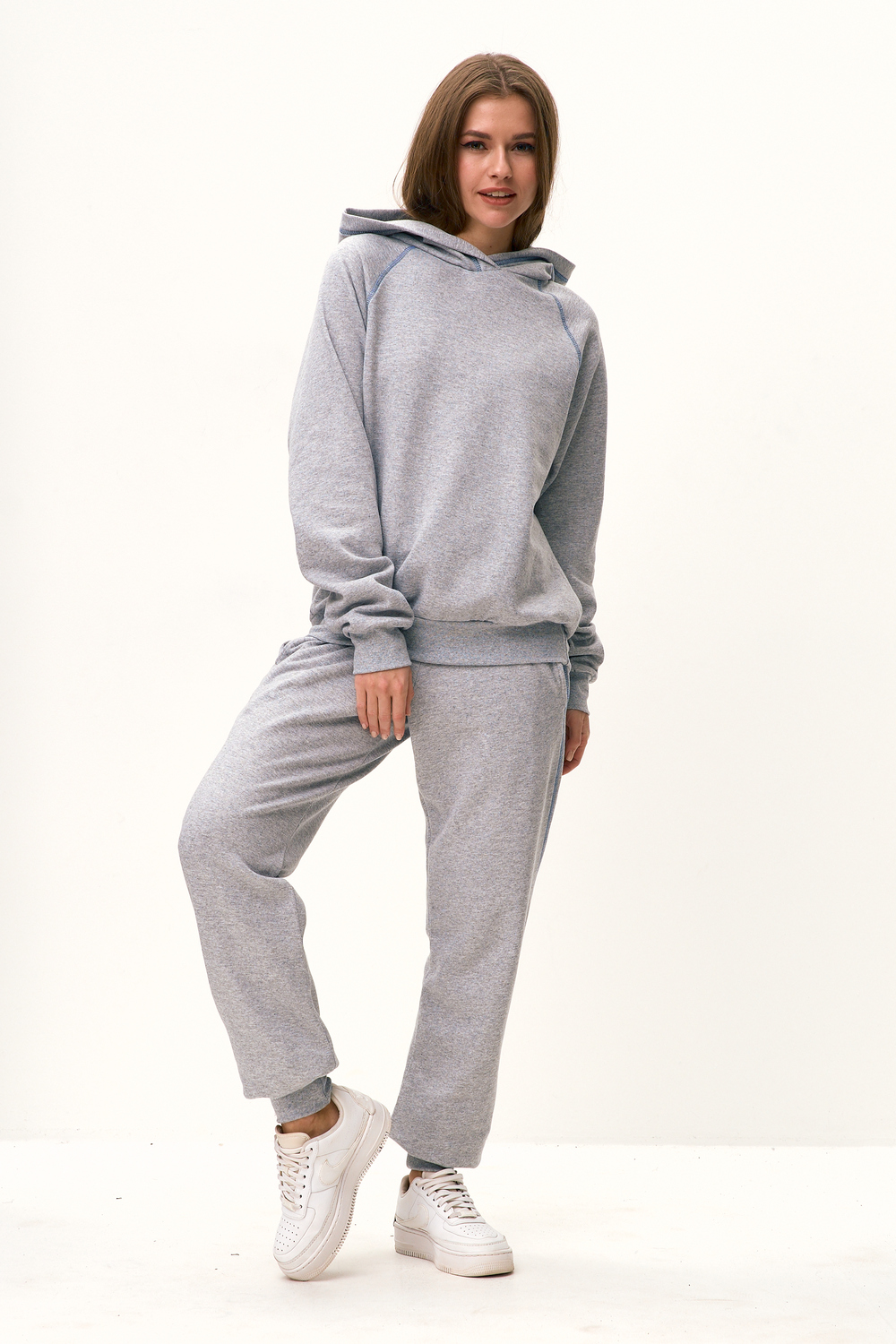Представляем вашему вниманию мягкий и уютный женский костюм для дома, прогулок по парку, спорта, изготовленный из высококачественного, приятного телу трикотажного полотна, состоящего на 100% из хлопка. На полочке кофты имеется цветная отстрочка придающий изделию особый шарм. Дополнительным декором кофты служит капюшон и рукав реглан с манжетом. По бокам брюк плавно переходящие швы контрастного цвета для вашей индивидуальности. Костюм красиво сидит на фигуре и при этом не стесняет движений. В нем Вы будете чувствовать себя комфортно и уверенно.