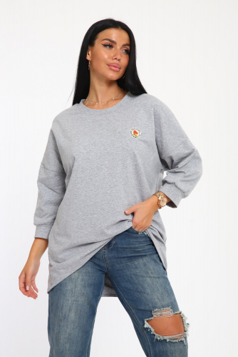 Кофточка женская с боковыми рельефами, переходящими в разрезы шлицы. Незаменимая вещь в гардеробе каждой модницы. Рукав цельнокроеный, спущенный, летучая мышь, 3/4. На полочке кофты выполнена печать которая прекрасно дополняет образ, придавая изделию особый шик. Крой кофты летучая мышь из футера - отличное решение на каждый день! Свободный крой, широкая пройма рукава - модель отлично садится на любую фигуру. Кофта прекрасно сочетается с брюками, шортами, юбками, джинсами. Стильно, красиво и удобно!