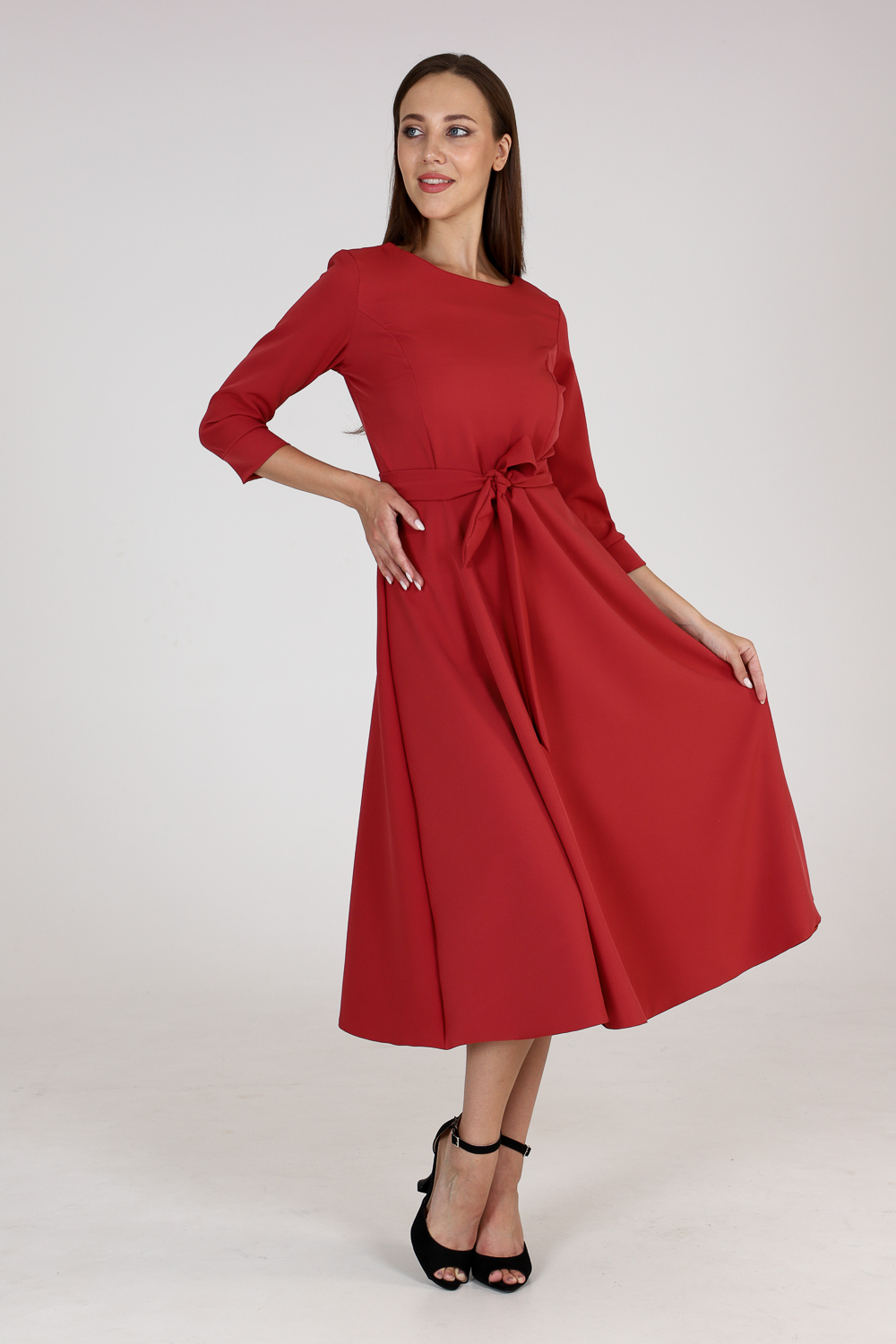 Классическое платье для девушек и женщин смотрится не только по-деловому, но и невероятно женственно. Выигрышная модель для носки на каждый день, в офис или праздник. От пояса идет юбка-полусолнце, длина-миди скроет то, что хотелось бы скрыть, подчеркнув при этом женственность силуэта. Элегантное платье сделает ваш образ безупречным.