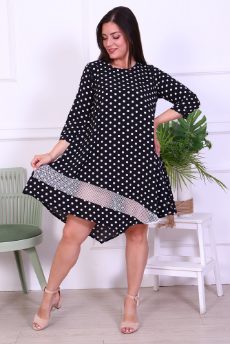 Платье женское, расклешенного кроя, округлая горловина, рукав 3/4,низ платья декорирован вшитой сеточкой. Легкое и удобное.