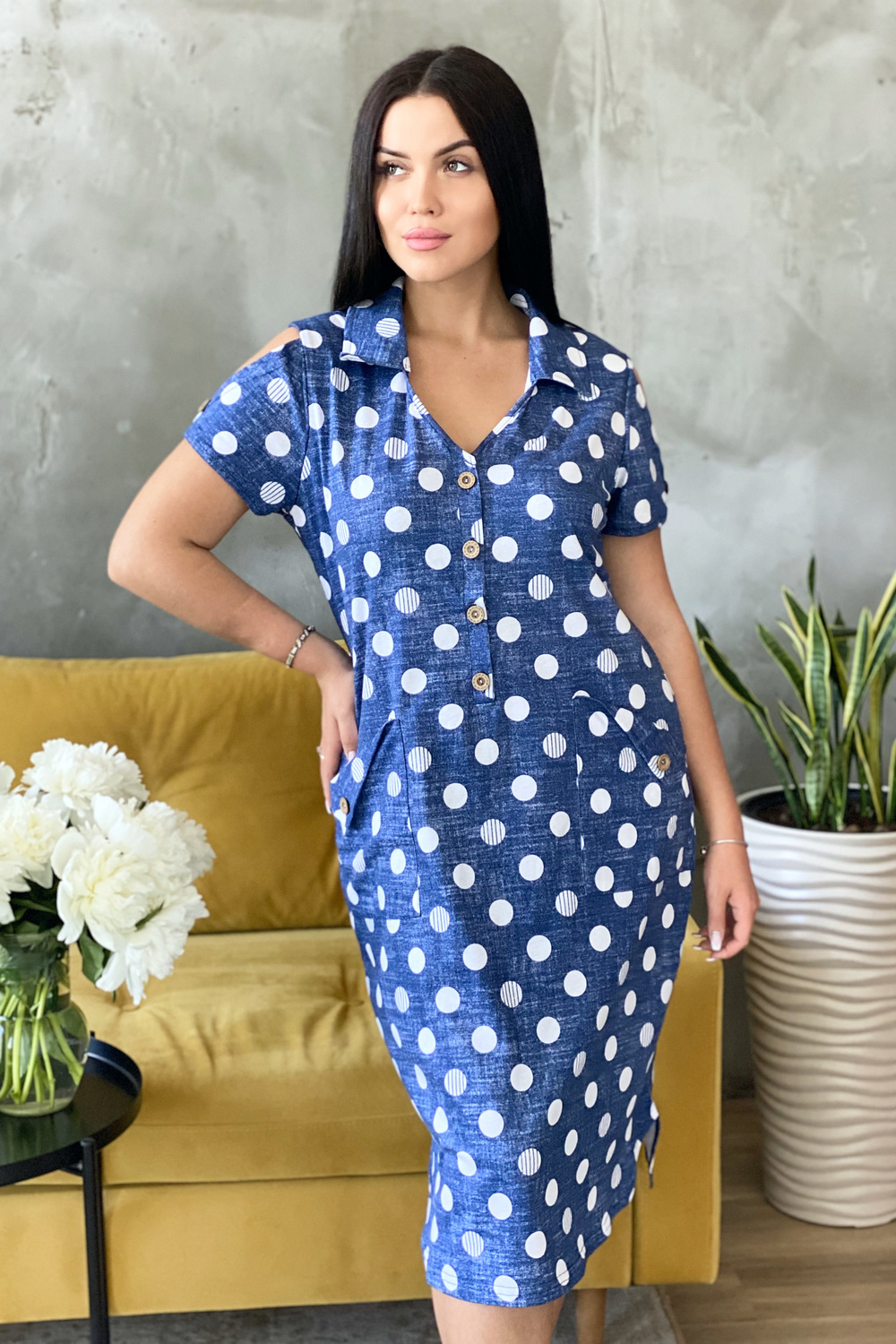 Платье женское полуприлегающего силуэта с застежкой поло.