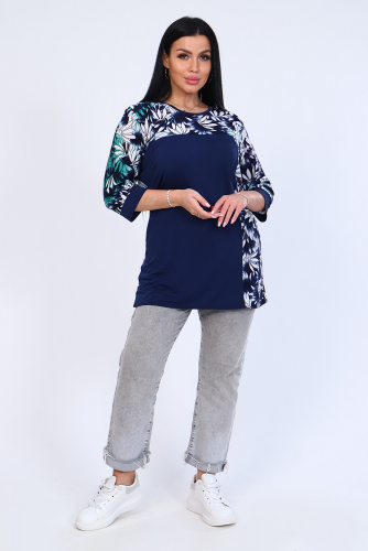 Платье женское приталенного силуэта. Рукав реглан до локтя. Горловина, низ рукава и талия собраны на эластичную тесьму. Нижняя часть платья, расположенная от линии бедер, имеет небольшую сборку. В боковых швах внутренние карманы. В лекалах учтена незначительная усадка ткани после стирки.