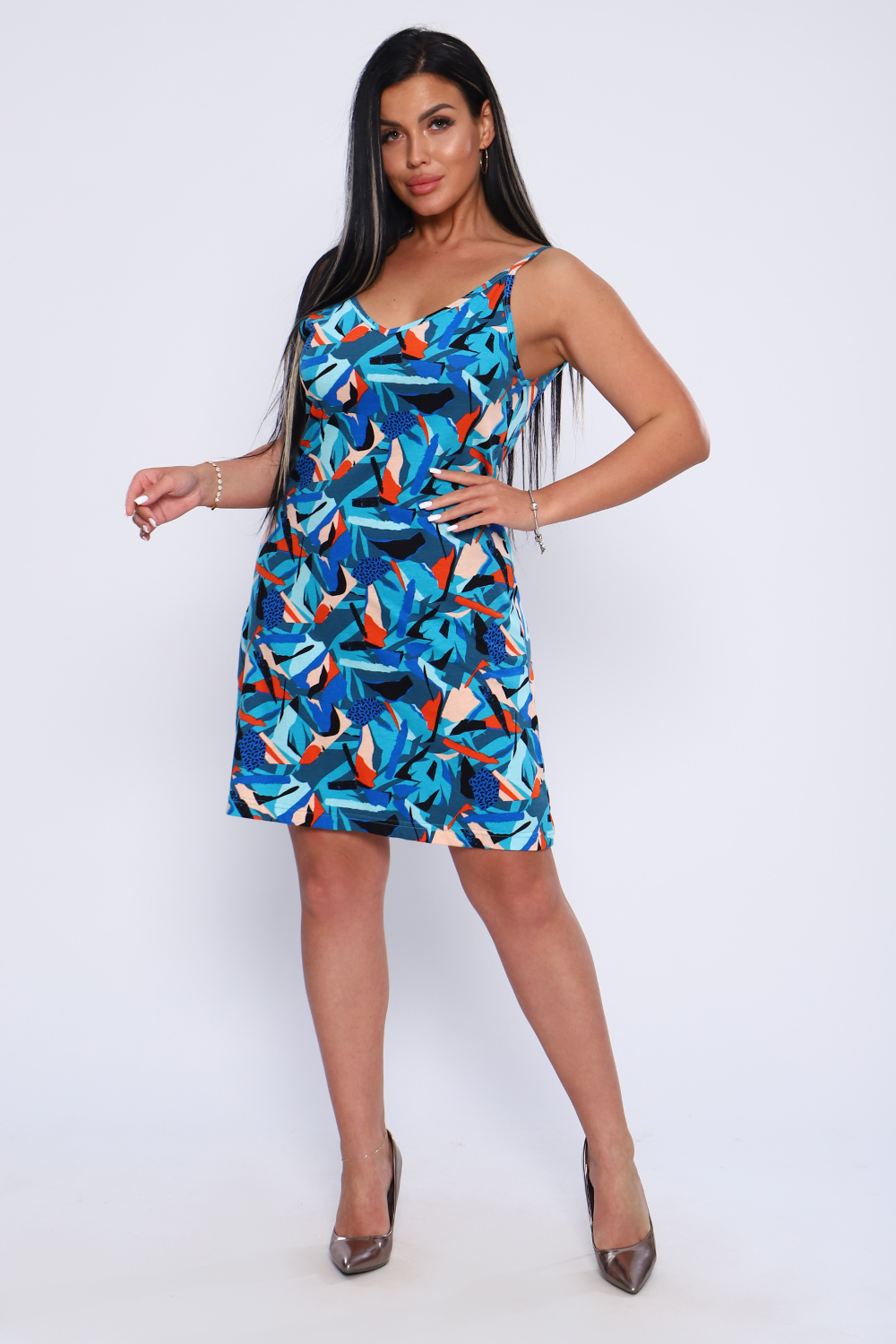 Летний молодёжный сарафан на тонких бретелях расклешенный к низу и длиной выше колена. V-образный вырез горловины, проймы и вырез на спинке обработаны окантовкой из основной ткани, переходящей в тонкие нерегулируемые бретели. Спинка выполнена с глубоким вырезом, что создает привлекательный летний образ. Сарафан сшит из 100%-го хлопкового кулирного полотна с яркими сочными принтами в виде абстракции высокого качества, что делает изделие комфортным для носки в жаркую погоду. При среднем по интенсивности и температурном режиме стирки изделие долго сохраняет цвет и форму. Благодаря универсальному пошиву сарафан можно носить одновременно как платье на выход, на прогулку, так и для домашнего ношения, на дачу, на пляж, а также как сорочку для сна. Прекрасный подарок любимым девушкам.